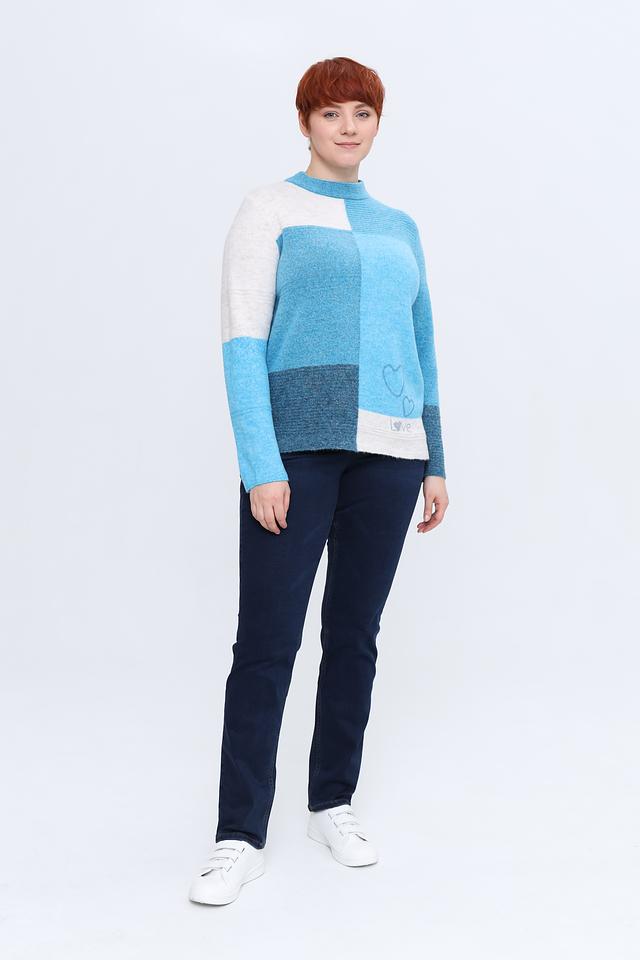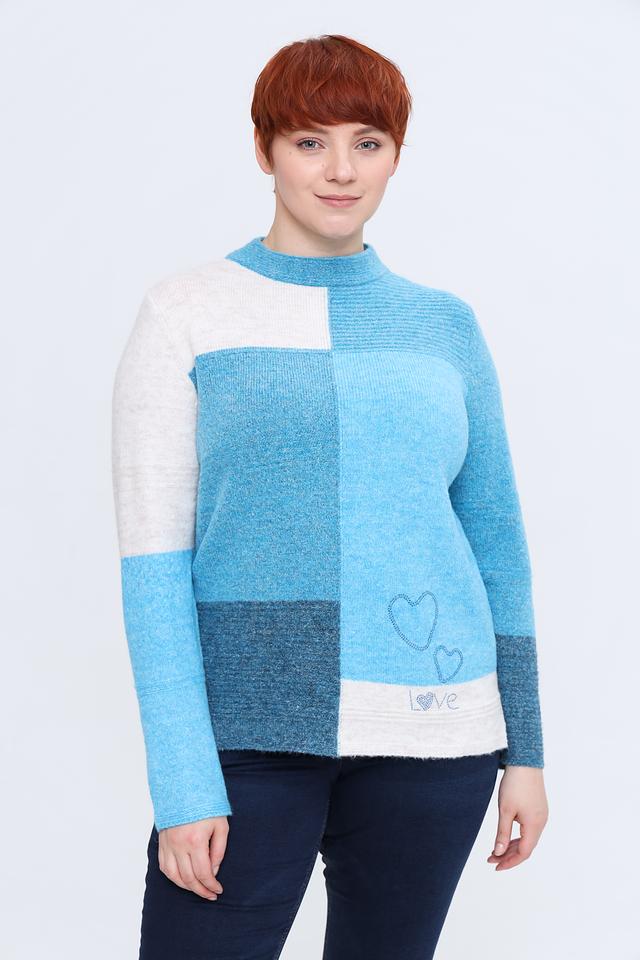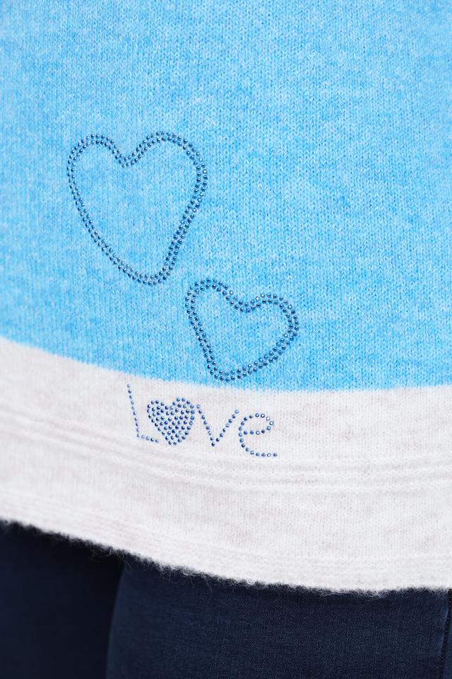 Женский пуловер Rabe collection голубого цвета с оригинальным дизайном в полоску и декоративными элементами в виде сердечек. Модель выполнена из мягкого и приятного к телу сочетания материалов. Состав: полиакрил 30%, полиамид 29%, хлопок 16%, шерсть 13%, модал 10%, эластан 2%