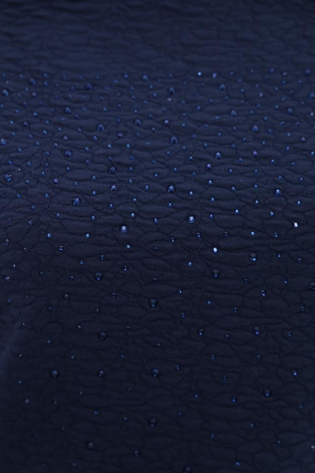 Особенностью модели является рельефная текстура вязки, создающая интересный визуальный эффект. Передняя часть пуловера украшена деликатной вышивкой из бисера, добавляющей изысканности образу. Состав ткани включает 60% хлопок, 37% полиэстер и 3% эластан, что обеспечивает комфорт, мягкость и хорошую посадку по фигуре.