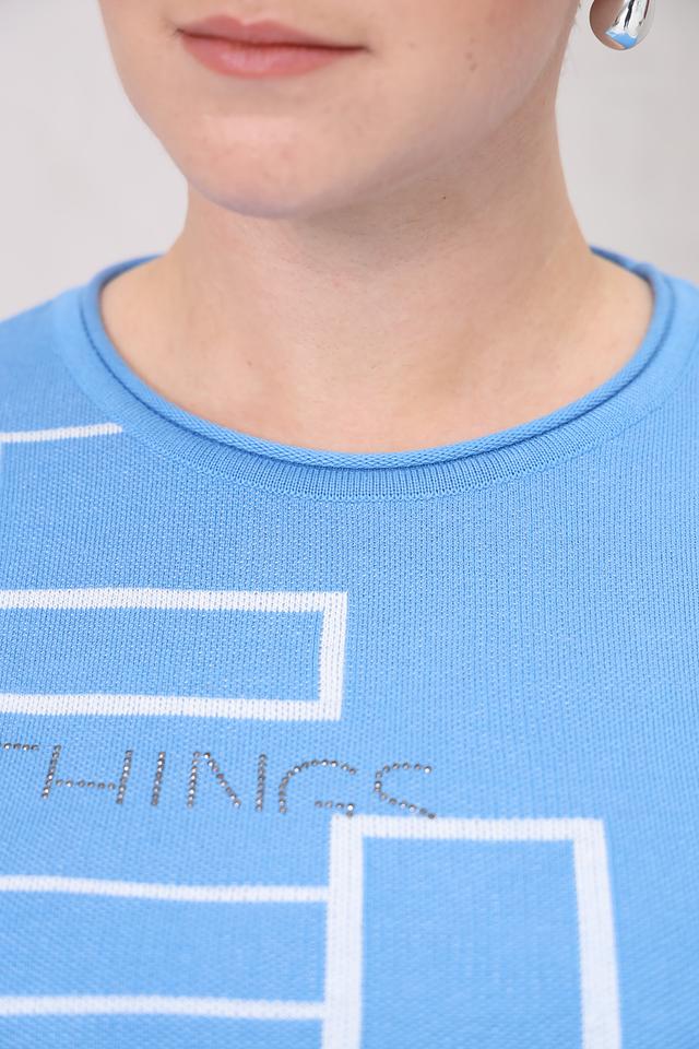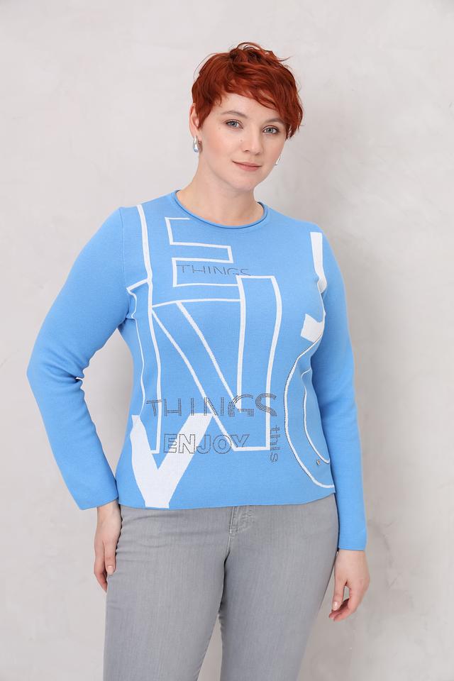 Этот стильный пуловер от Rabe collection выполнен в нежном голубом цвете и украшен современным геометрическим принтом с надписями. Модель имеет классический крой с длинными рукавами и круглым вырезом горловины, что делает его универсальным для различных образов.