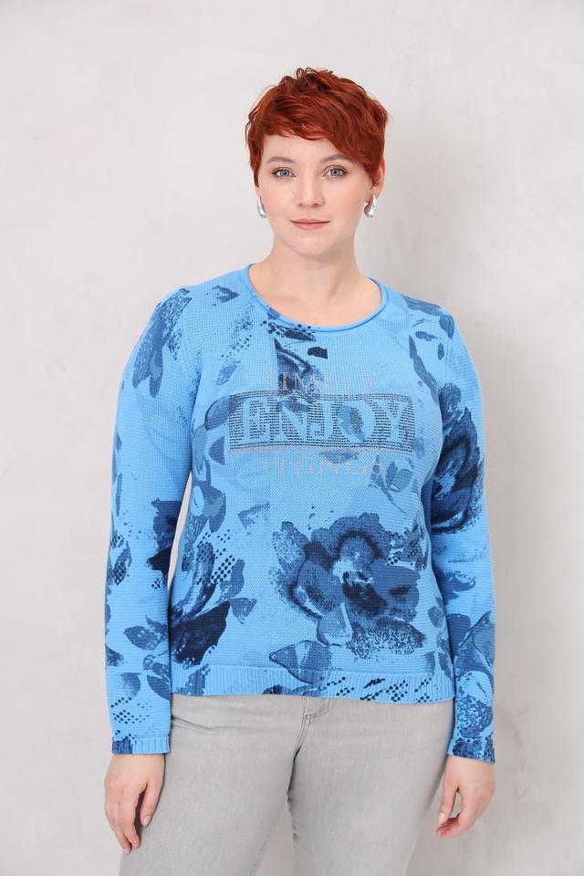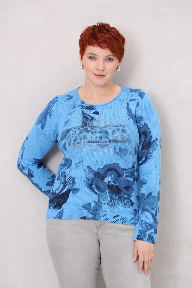 Женский пуловер Rabe collection голубого цвета с ярким цветочным принтом станет отличным дополнением к вашему гардеробу. Изготовлен из мягкого хлопка, обеспечивающего комфорт в носке. Модель имеет округлый вырез горловины и длинные рукава. Состав: хлопок 100%