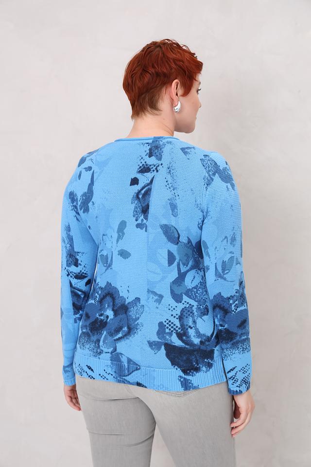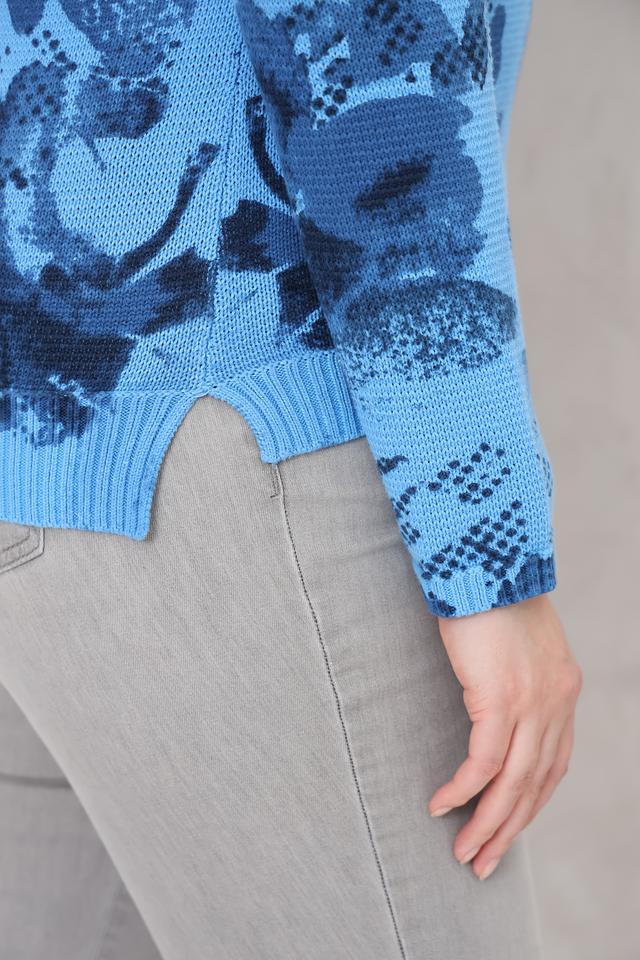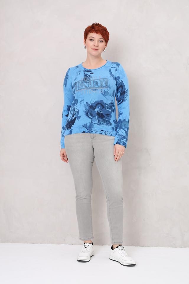 Этот стильный пуловер от Rabe collection выполнен в нежном голубом цвете и украшен эффектным цветочным принтом. Модель имеет удобный крой и идеально подходит для создания повседневных образов.