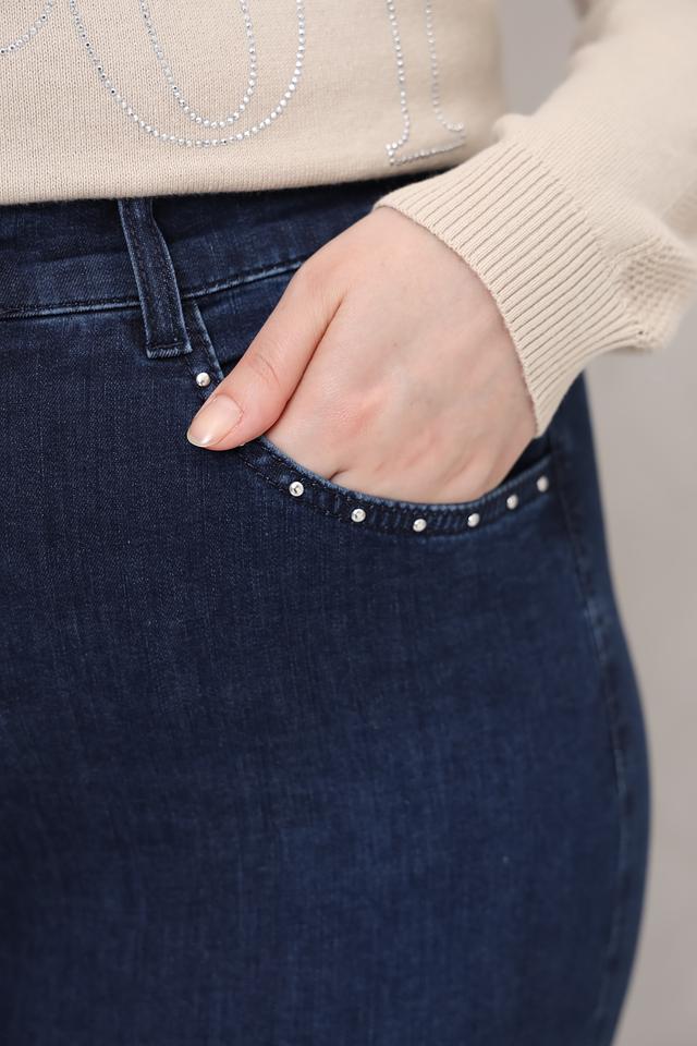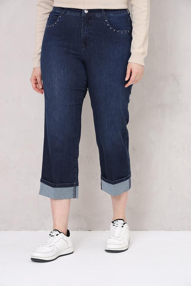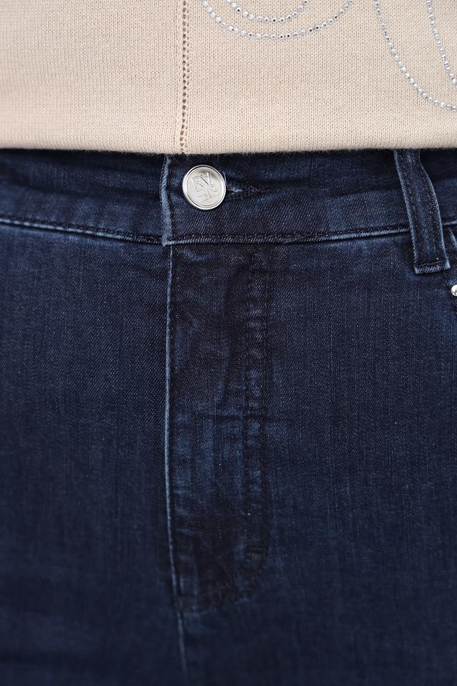 Джинсы капри Rabe collection тёмно-синего цвета – удобная и стильная модель с зауженным к низу силуэтом. Классическая посадка и декор в виде страз на задних карманах делают эти джинсы отличным выбором для повседневной носки. Состав: хлопок 90%, полиэстер 8%, эластан 2%