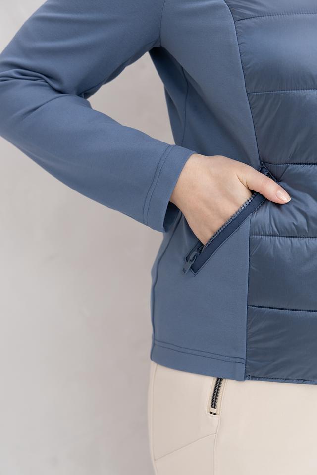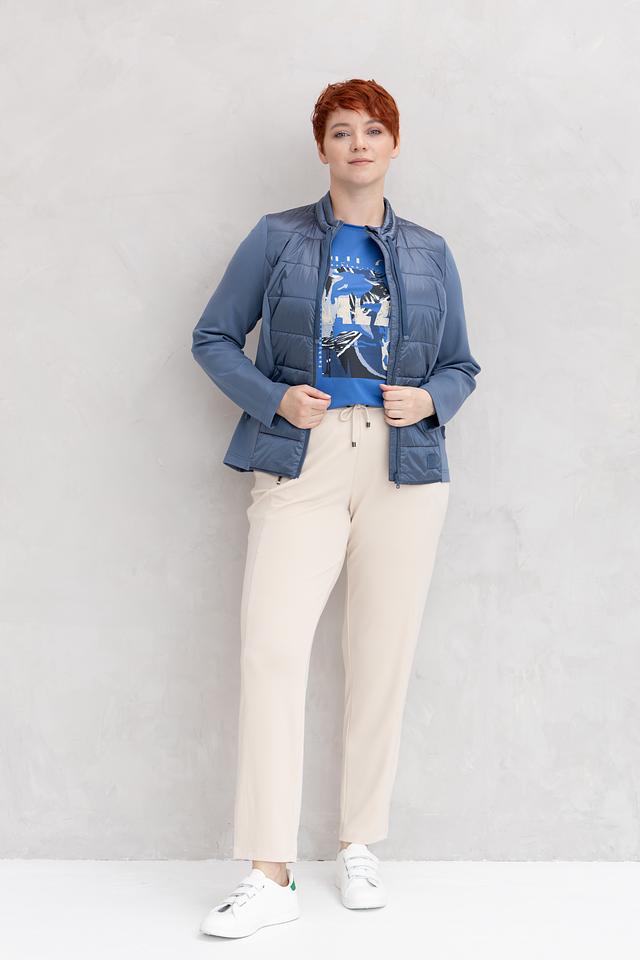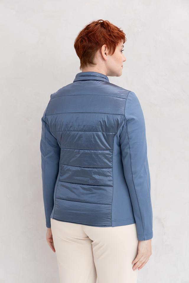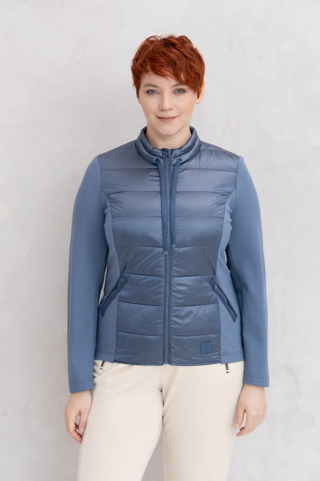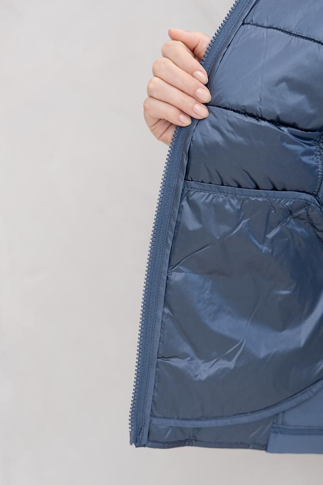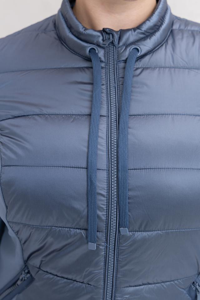 Жакет имеет стеганую фактуру, которая придает ему особый шарм. Модель дополнена удобным капюшоном со шнурками для регулировки. Застежка – молния. Рукава жакета выполнены из гладкой ткани, что обеспечивает комфорт при носке.
