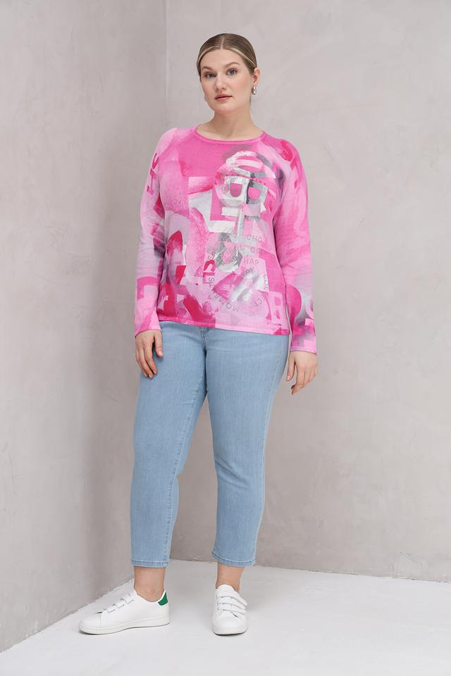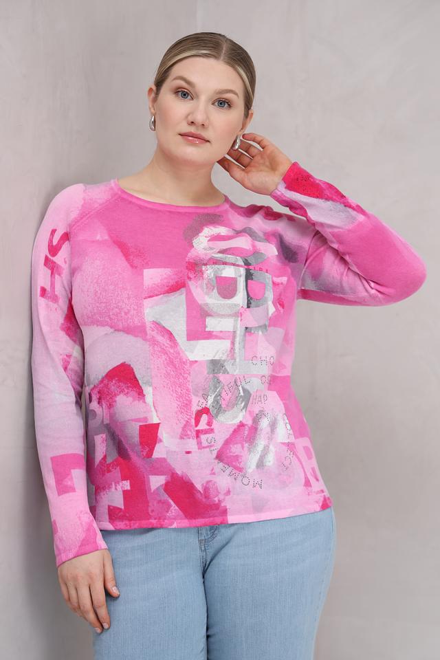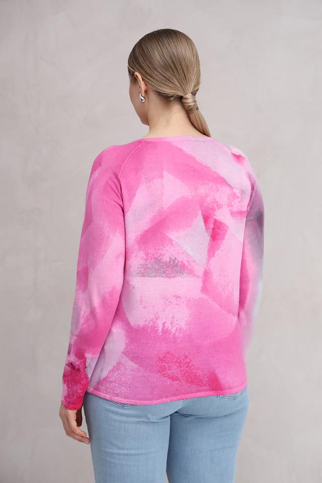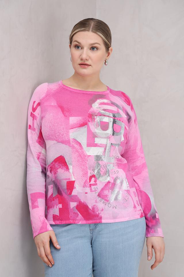 Этот пуловер от Rabe collection выполнен в нежном розовом цвете и украшен оригинальным абстрактным принтом, который делает его ярким и запоминающимся.