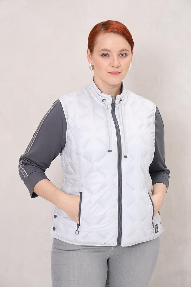 Стильный жилет от бренда Rabe collection станет отличным дополнением к вашему гардеробу. Жилет выполнен в сером цвете с оригинальным стеганым рисунком.