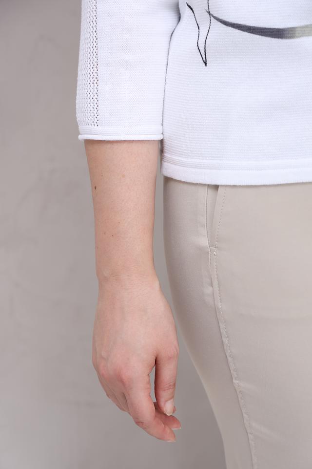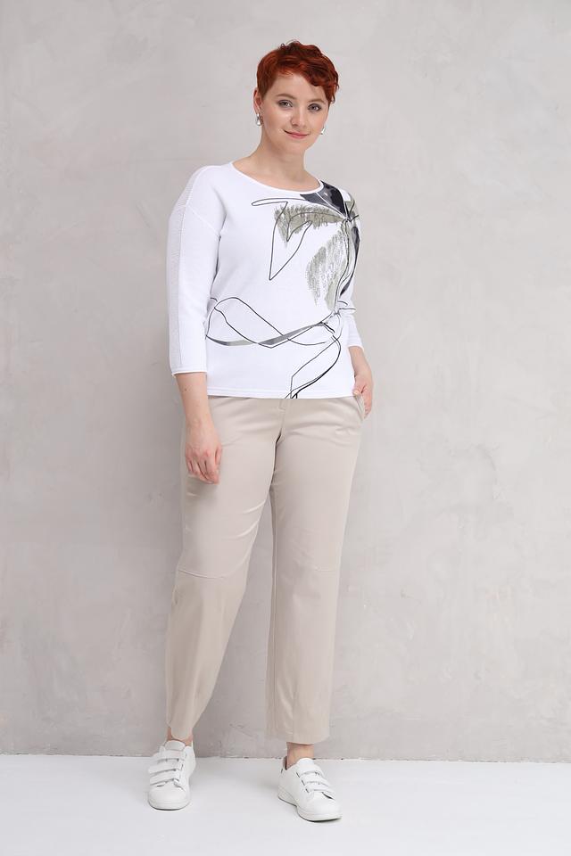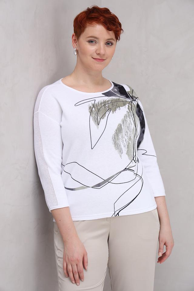 Белый пуловер от Rabe collection с оригинальным графичным принтом и рукавами 3/4. Изготовлен из мягкого хлопка, обеспечивающего комфорт в носке. Идеально дополнит повседневный образ. Состав: хлопок 100%