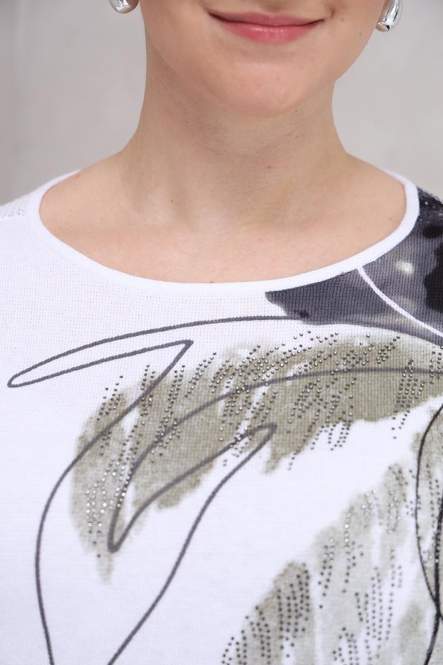 Детализированный дизайн с принтом добавляет образу изысканности и индивидуальности. Пуловер идеально сочетается с брюками, джинсами или юбками, создавая стильный и непринужденный образ. Он станет отличным выбором для повседневной носки и особых случаев.