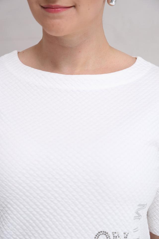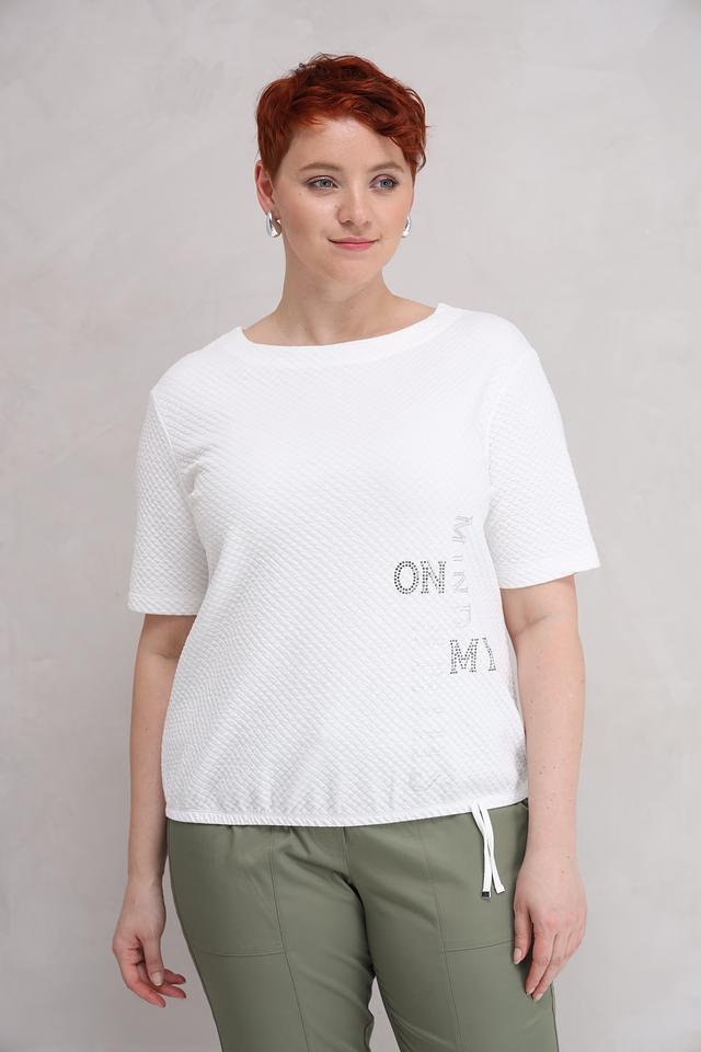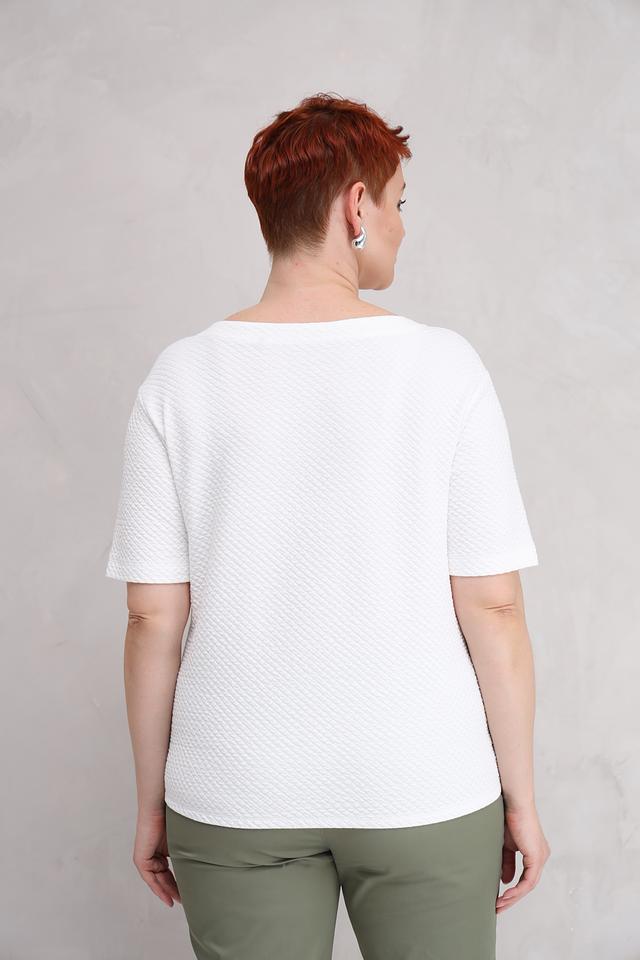 Белый пуловер от Rabe collection с текстурной фактурой и декоративной вышивкой. Модель выполнена из мягкого хлопка с добавлением полиэстера и эластана, обеспечивающих комфорт и сохранение формы. Состав: хлопок 63%, полиэстер 35%, эластан 2%