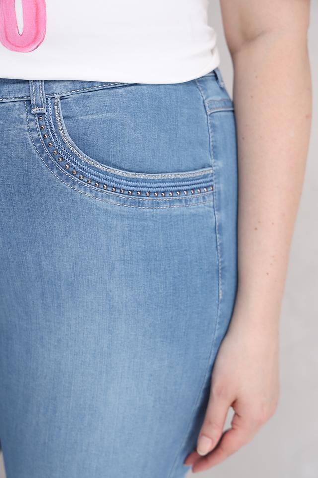Голубые джинсы Rabe collection — это удобная и стильная модель с зауженным к низу силуэтом и средней посадкой. Классический деним с небольшим добавлением эластана обеспечивает комфорт и свободу движений. Состав: хлопок 90%, полиэстер 8%, эластан 2%