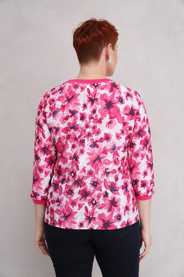 Блуза Rabe collection нежно-розового цвета с ярким цветочным принтом станет отличным дополнением к вашему гардеробу. Модель выполнена из мягкой вискозы, обеспечивающей комфорт в носке, и имеет удобный 3/4 рукав. Состав: вискоза 100%