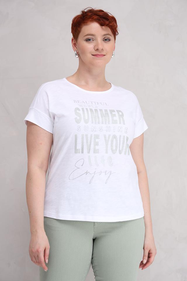 Белая футболка от Rabe collection с ярким летним принтом. Изготовлена из 100% хлопка, обеспечивающего комфорт и воздухопроницаемость. Отличный выбор для создания повседневного образа. Состав: хлопок 100%