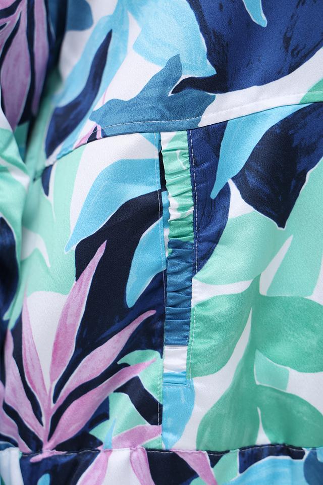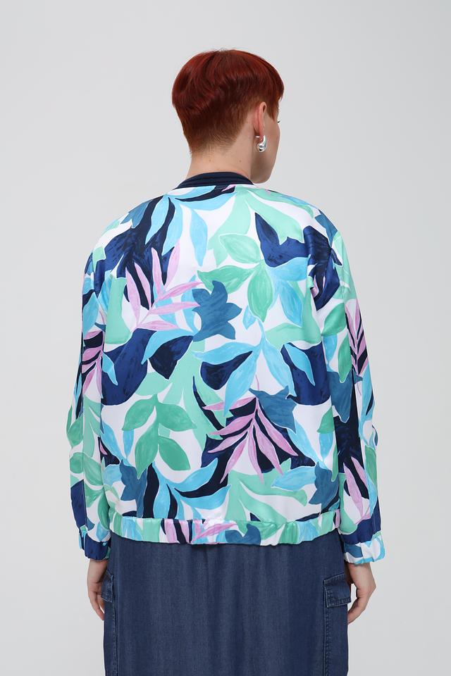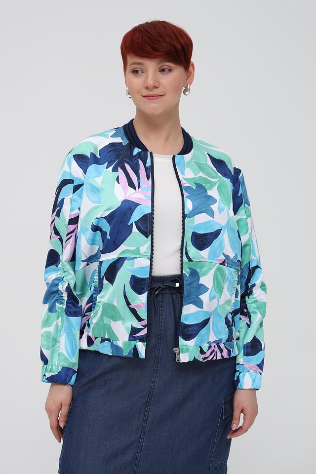 Этот жакет от Rabe collection станет ярким акцентом вашего гардероба. Модель выполнена в оригинальном дизайне с красочным цветочным принтом, сочетающим оттенки синего, зеленого и розового.