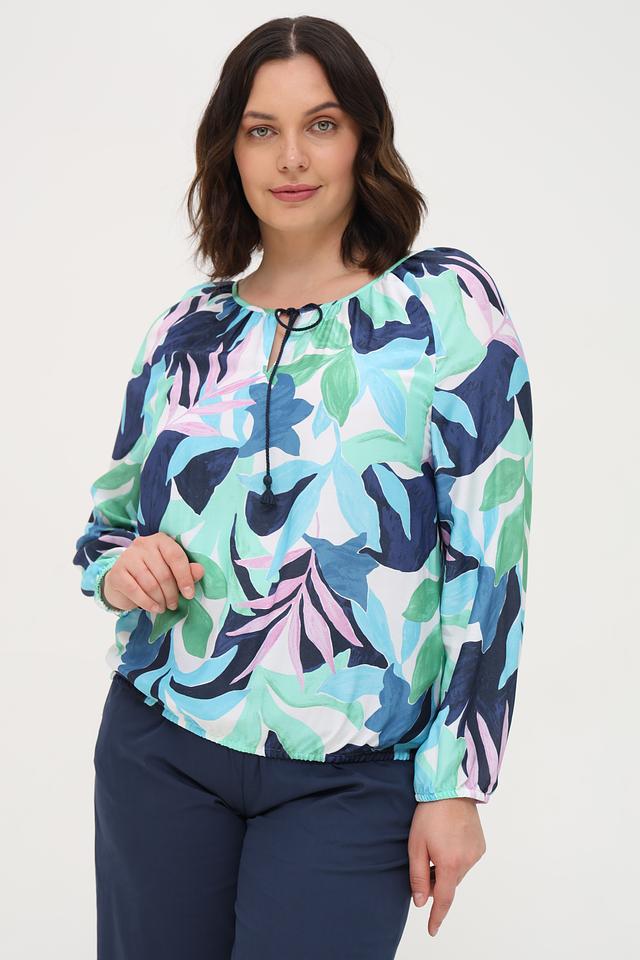 Яркий цветочный принт делает эту блузу отличным выбором для создания летних и весенних образов. Она прекрасно сочетается с брюками, юбками и джинсами.