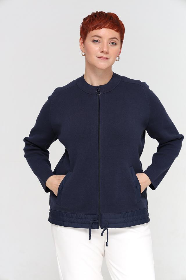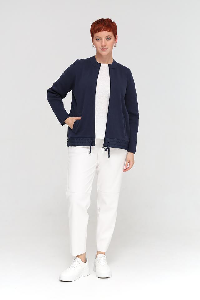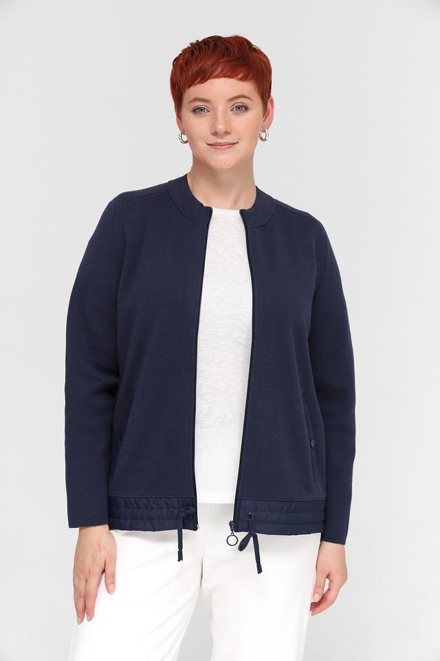 Жакет Rabe collection темно-синего цвета – стильная и удобная модель на молнии. Жакет выполнен из 100% хлопка, имеет оригинальную отделку нижней части и завязки по бокам. Состав: хлопок 100%