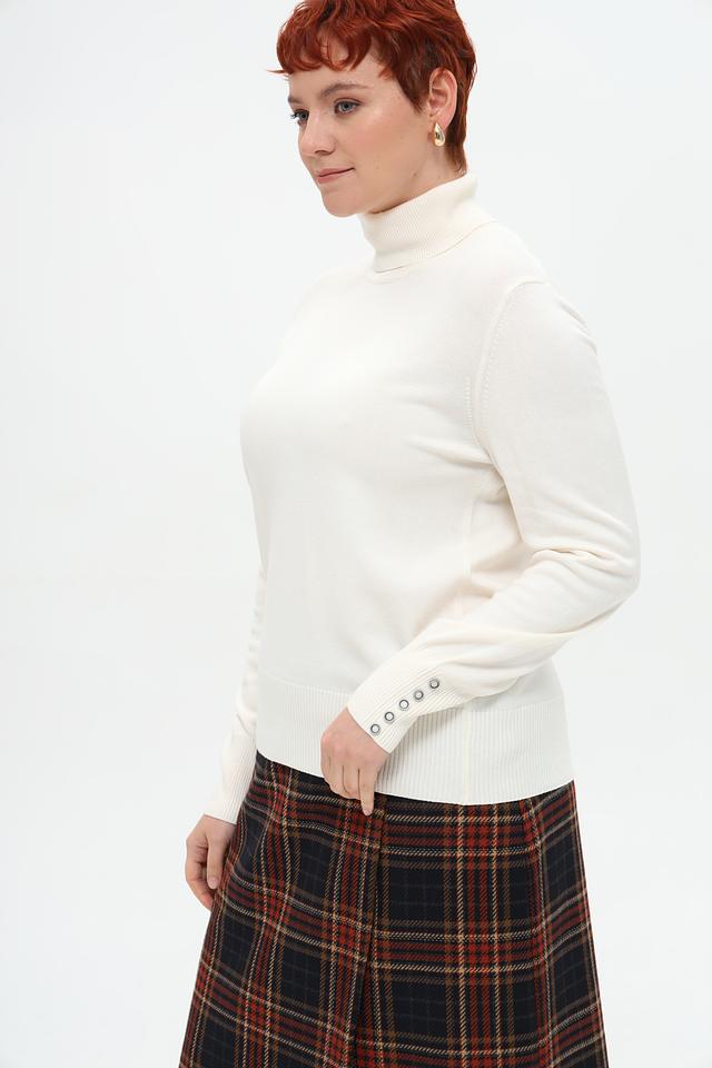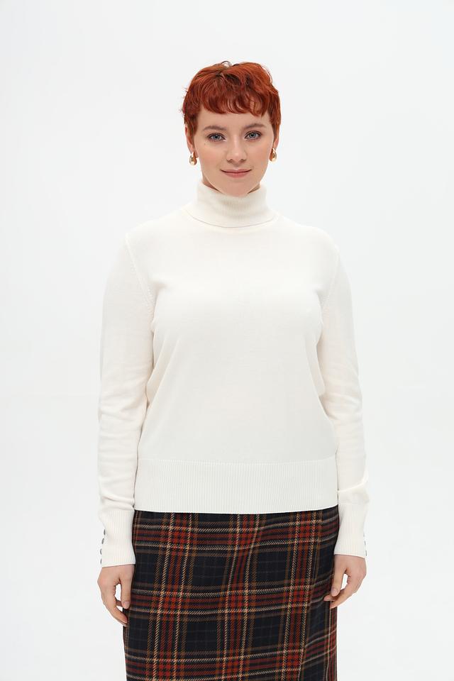 Водолазка имеет длинные рукава и высокий воротник, который не только согреет в прохладную погоду, но и добавит элегантности вашему образу. На манжетах рукавов расположены аккуратные пуговицы, которые придают модели особый шарм.