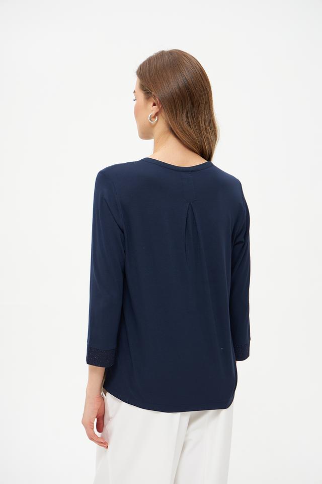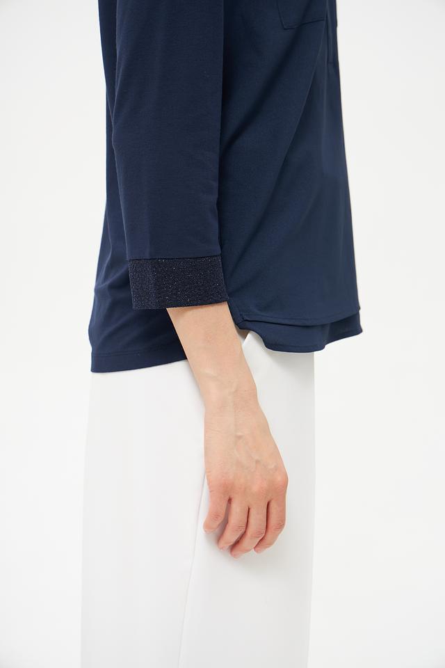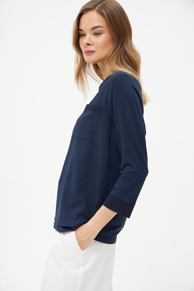 Темно-синяя блуза от Rabe collection – это стильная и удобная модель с карманами и рукавами 3/4. Изготовлена из мягкой вискозы с добавлением эластана, обеспечивающего комфортную посадку. Состав: вискоза 92%, эластан 8%