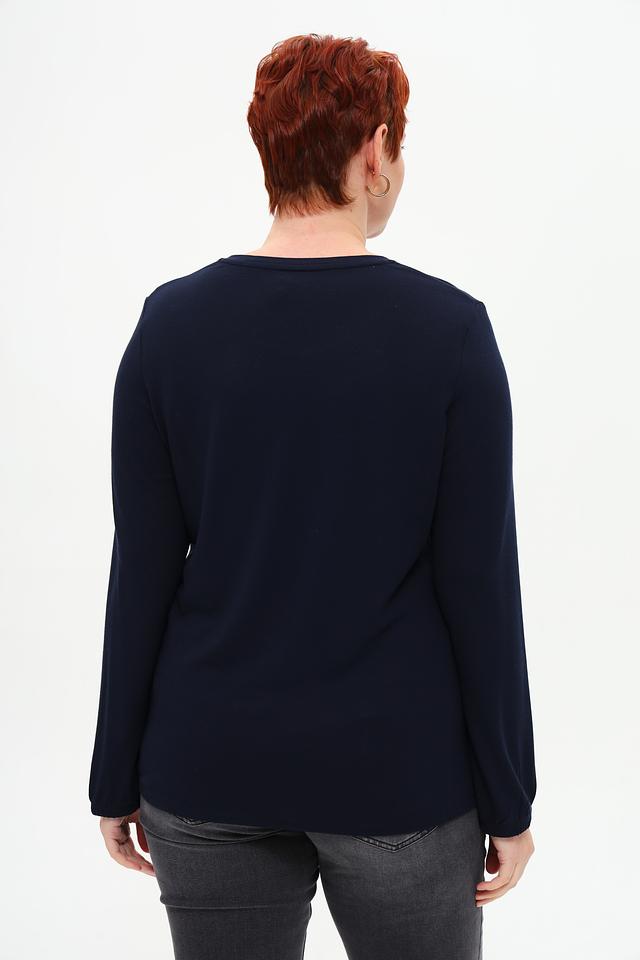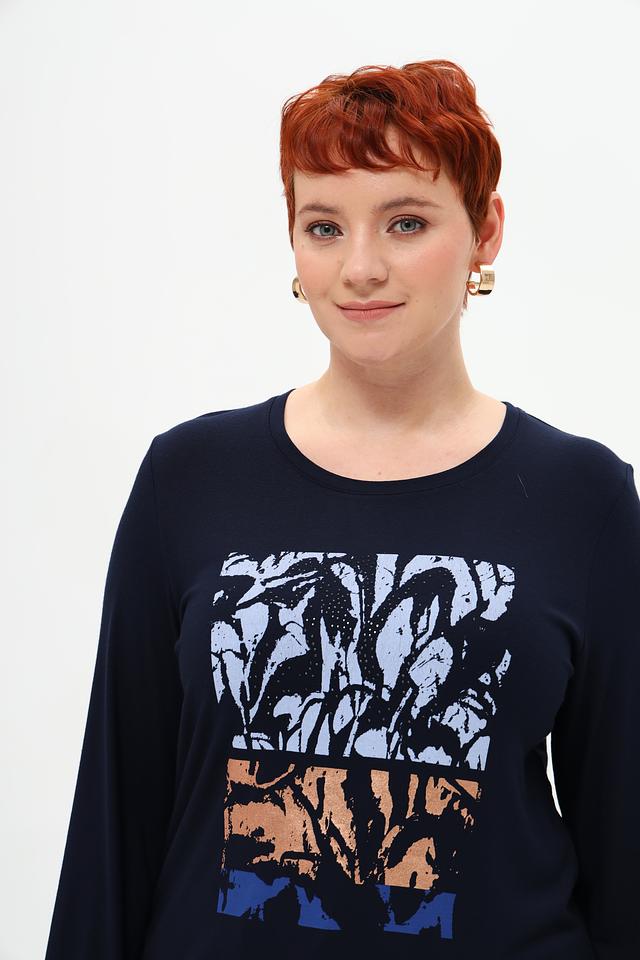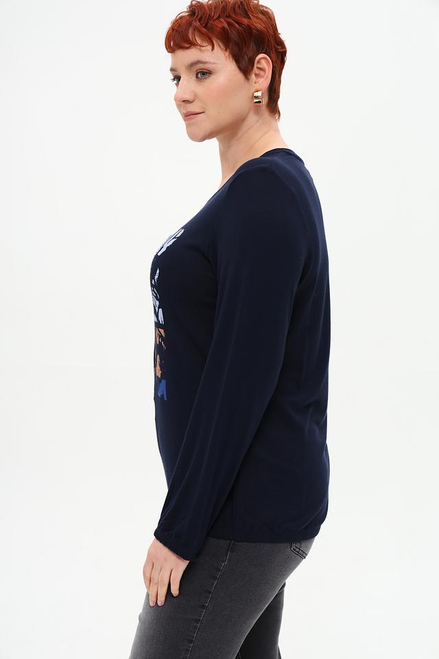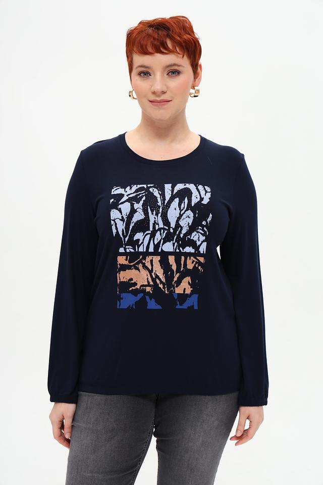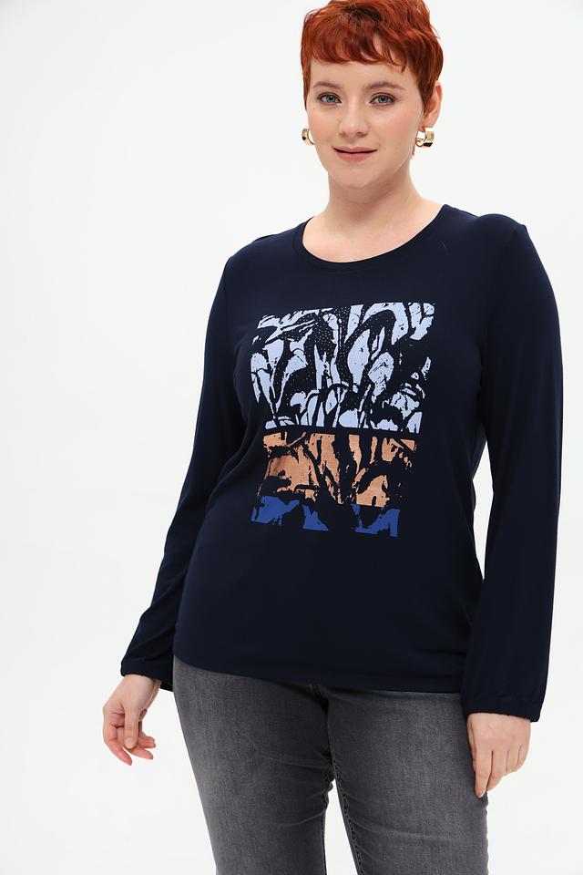 Женский лонгслив Rabe collection темно-синего цвета с оригинальным принтом. Изготовлен из мягкой вискозы с добавлением эластана для комфорта и хорошей посадки. Состав: вискоза 92%, эластан 8%