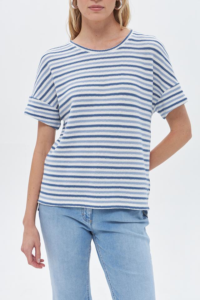 Женский пуловер Rabe collection синего цвета с полосатым узором – это стильное и комфортное решение для повседневного гардероба. Изготовлен из мягкого и приятного к телу сочетания хлопка, полиэстера и вискозы, обеспечивающего удобство в носке. Состав: хлопок 49%, полиэстер 32%, вискоза 18%, эластан 1%
