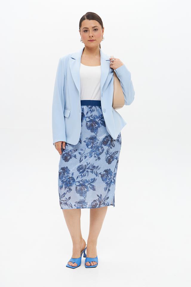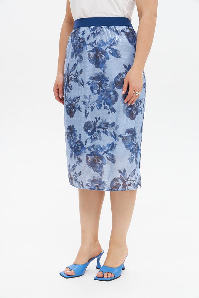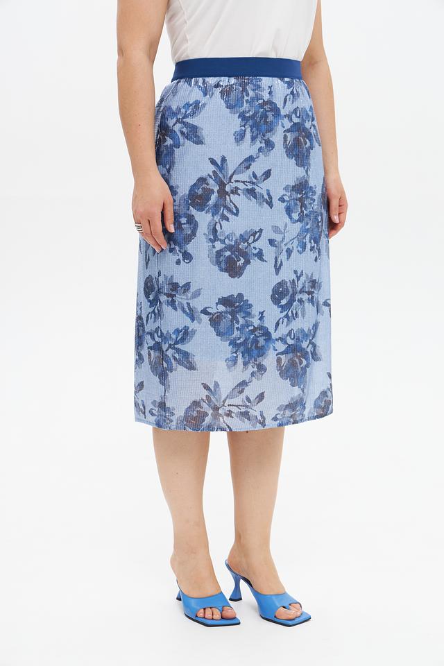 Юбка Rabe collection голубого цвета с цветочным принтом – стильное и комфортное решение для создания элегантного образа. Модель выполнена из полиэстера и имеет удобную посадку по фигуре. Состав: полиэстер 100%