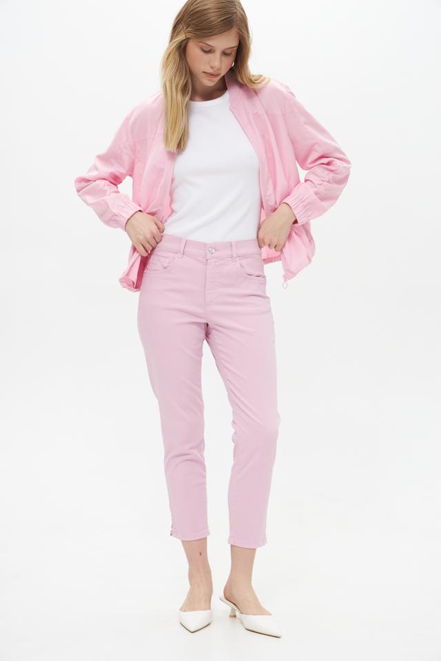 Представляем стильные женские джинсы от бренда Rabe collection. Модель выполнена в нежном розовом цвете с вертикальной полоской, что придает образу свежесть и легкость.