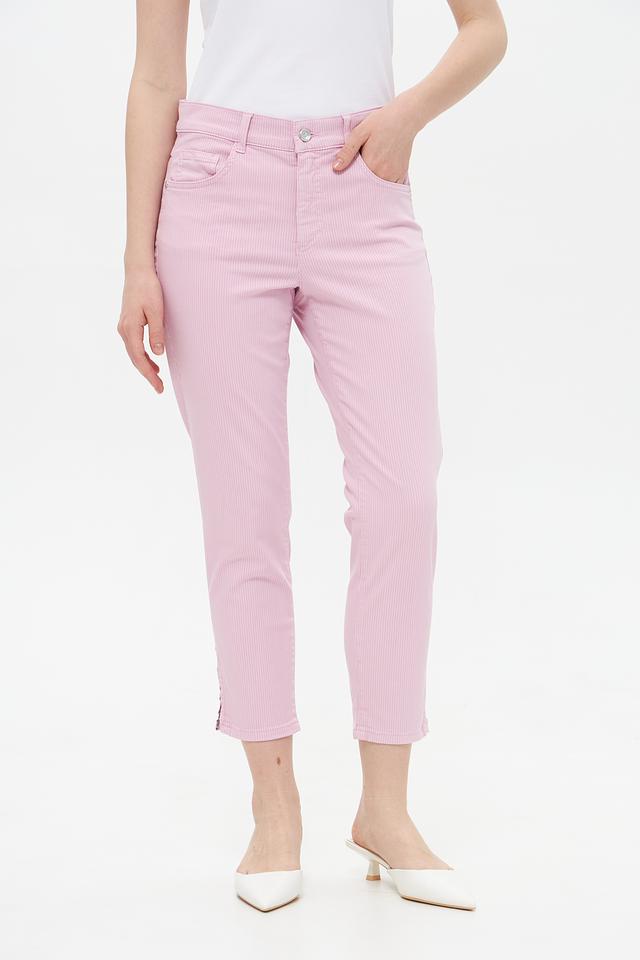 Женские джинсы Rabe collection нежного розового цвета с вертикальной полоской. Изготовлены из хлопка с добавлением полиэстера и эластана для комфорта и удобства. Модель с застежкой на молнию и пуговицу. Состав: хлопок 74%, полиэстер 23%, эластан 3%