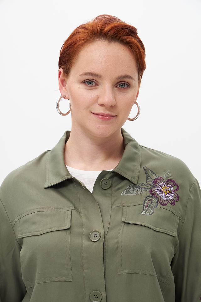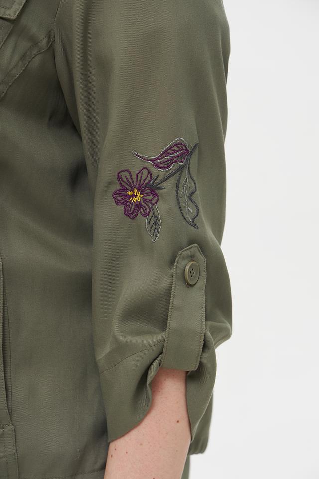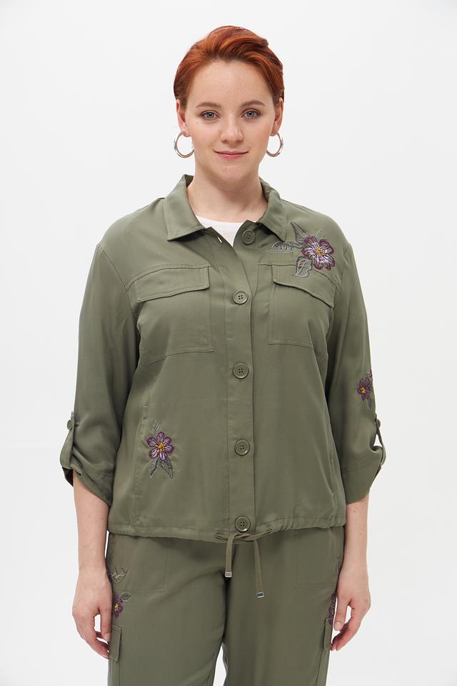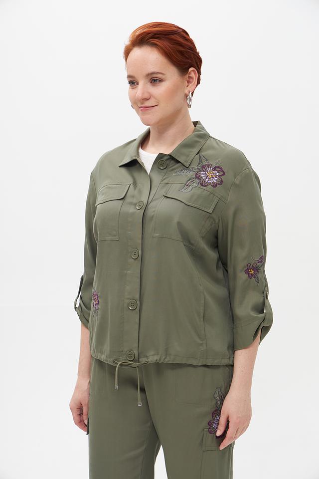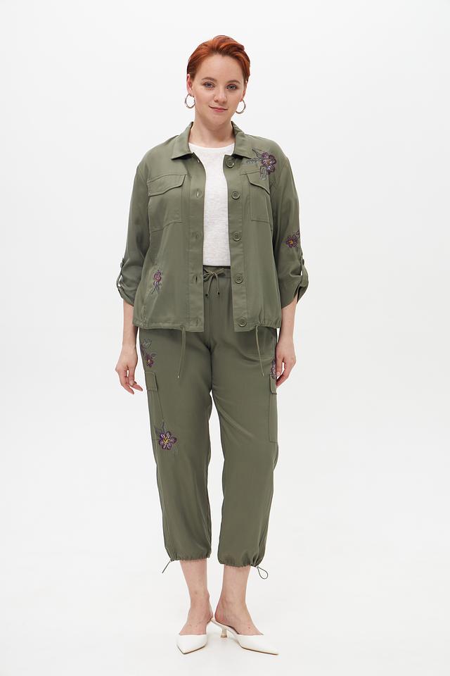 Жакет Rabe collection хаки цвета с цветочной вышивкой – стильное и комфортное решение для создания повседневных образов. Модель выполнена из 100% лиоцела, что обеспечивает приятные тактильные ощущения и отличную посадку. Состав: лиоцел 100%