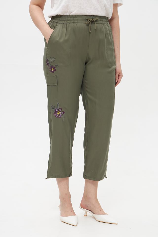 Брюки карго от Rabe collection цвета хаки с вышивкой – стильное и комфортное решение для повседневного образа. Модель выполнена из 100% лиоцела, что обеспечивает приятные тактильные ощущения и удобство в носке. Состав: лиоцел 100%