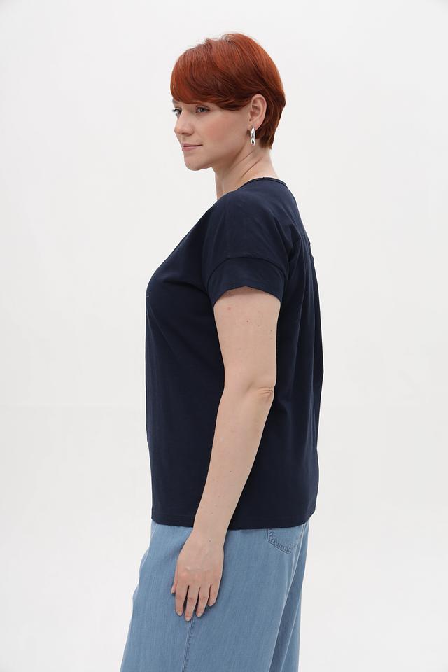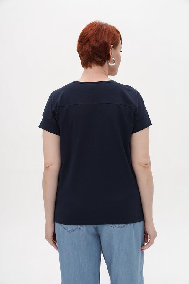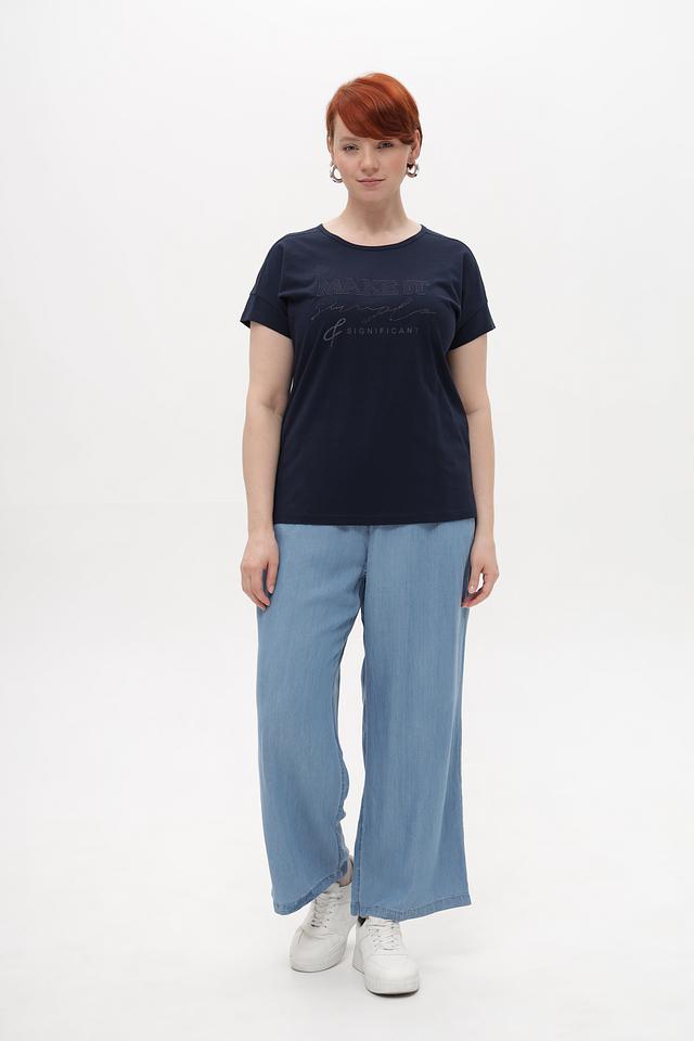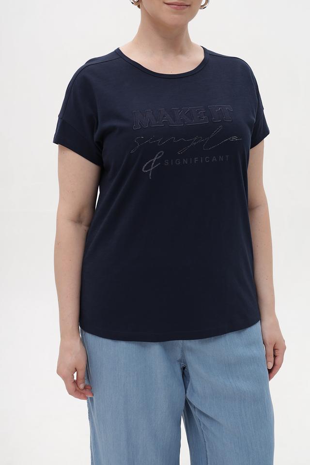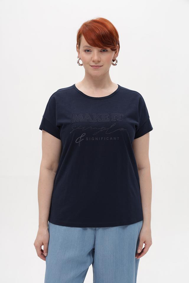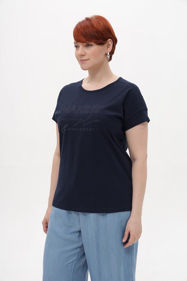 Женская футболка Rabe collection темно-синего цвета с оригинальным принтом. Изготовлена из 100% хлопка, обеспечивающего комфорт и воздухопроницаемость. Состав: хлопок 100%