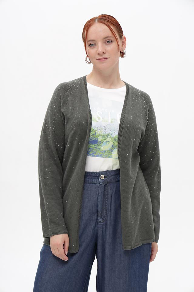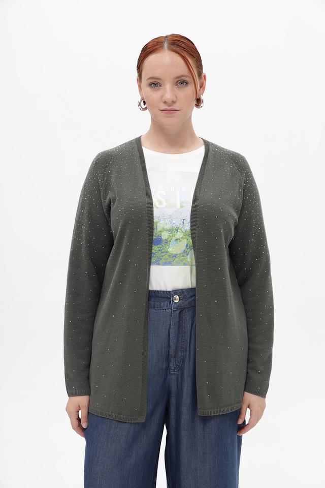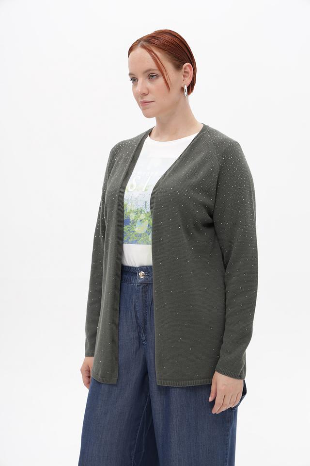 Жакет Rabe collection хаки цвета, украшенный пайетками, выполнен из 100% хлопка. Удобный и стильный кардиган станет отличным дополнением к вашему гардеробу. Состав: хлопок 100%