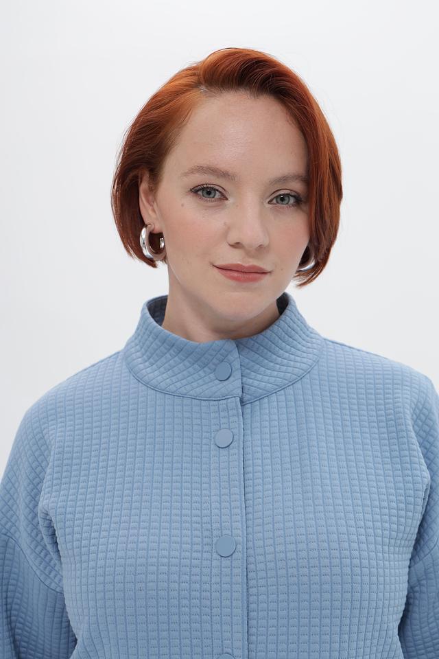Стеганый жакет Rabe collection голубого цвета – стильное и практичное решение для прохладной погоды. Модель выполнена из полиэстера с добавлением вискозы и эластана, что обеспечивает комфорт и удобство в носке. Застежка на пуговицы. Состав: полиэстер 82%, вискоза 15%, эластан 3%