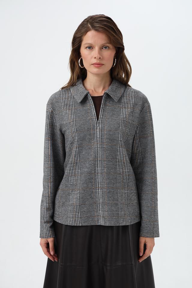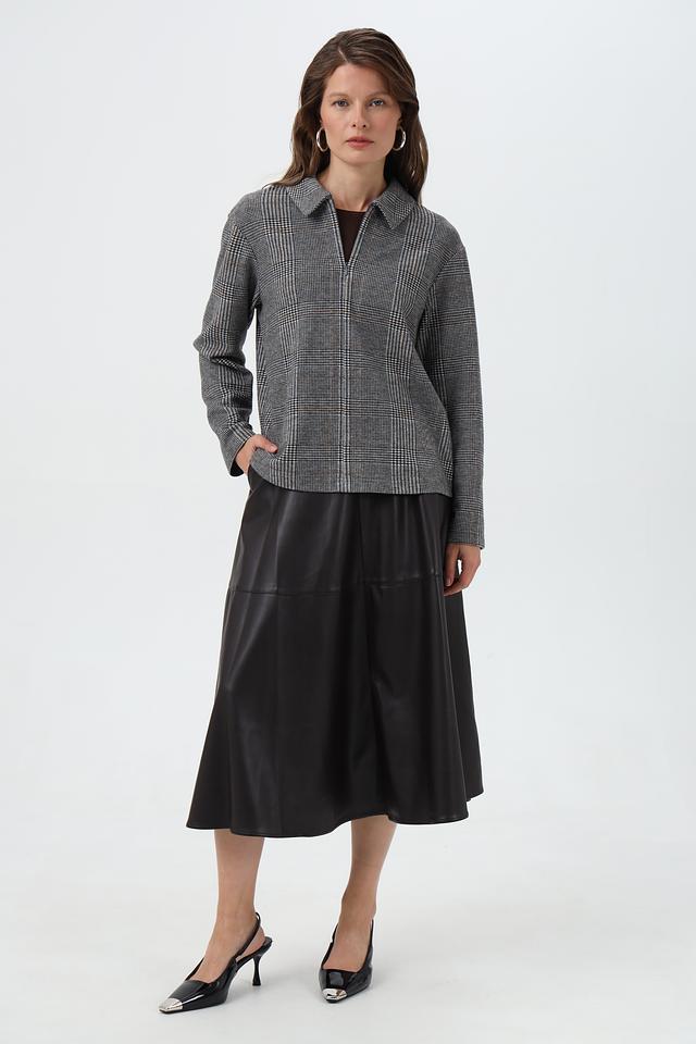 Стильный пуловер Rabe collection серого цвета в классическую клетку станет отличным дополнением к вашему гардеробу. Модель с длинным рукавом и воротником-стойкой легко сочетается с юбками и брюками, создавая элегантный образ. Состав: полиэстер 72%, вискоза 25%, эластан 3%
