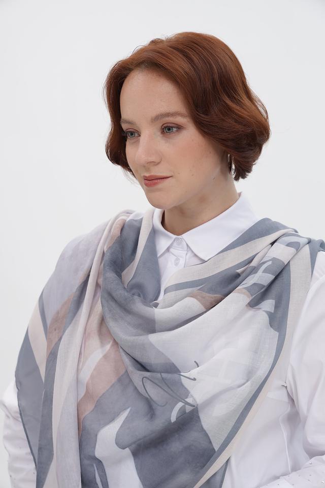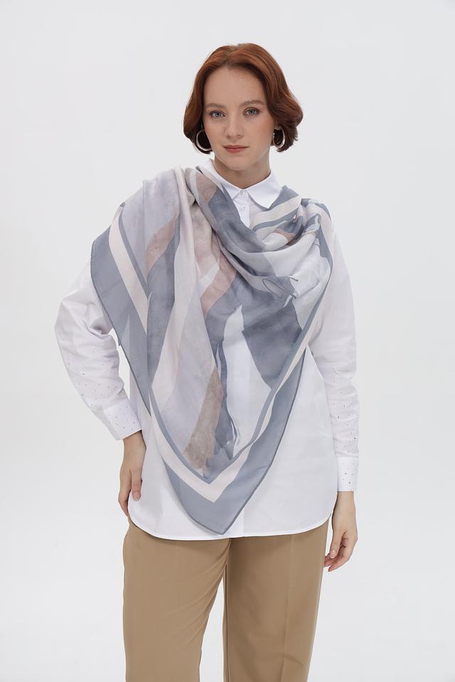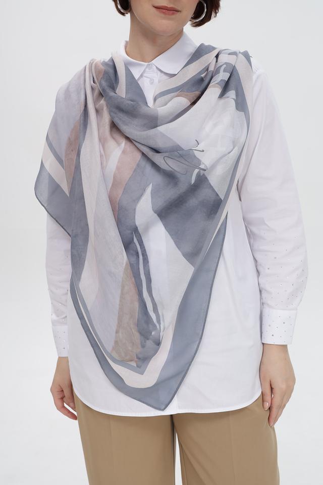 Дизайн платка представляет собой сочетание геометрических форм и плавных линий, создающих современный и изысканный вид. Такой аксессуар идеально дополнит как повседневный, так и вечерний наряд, придавая ему индивидуальность и стиль.