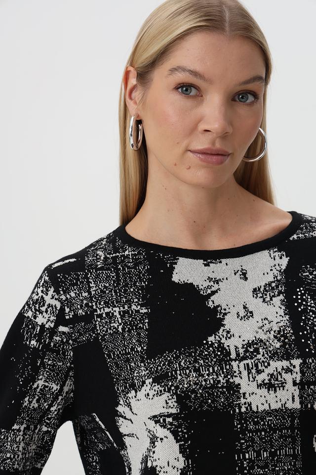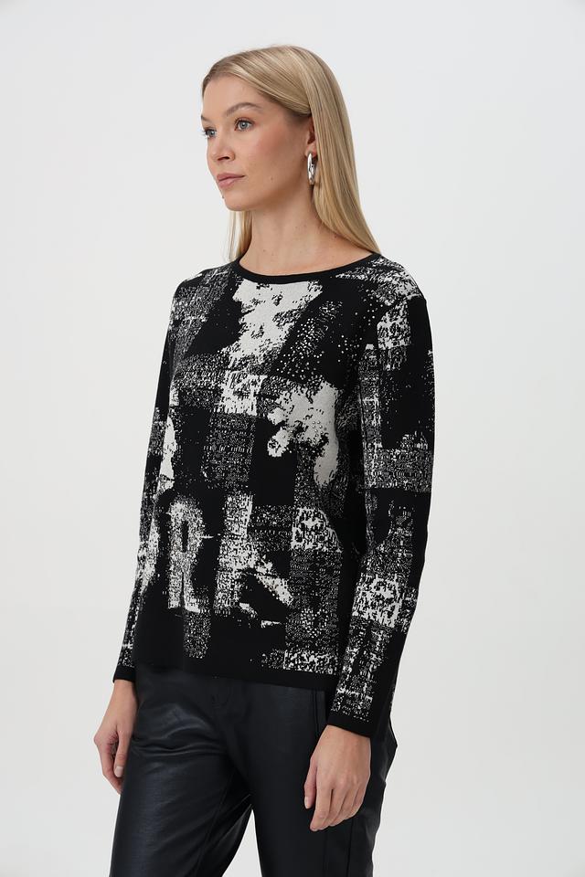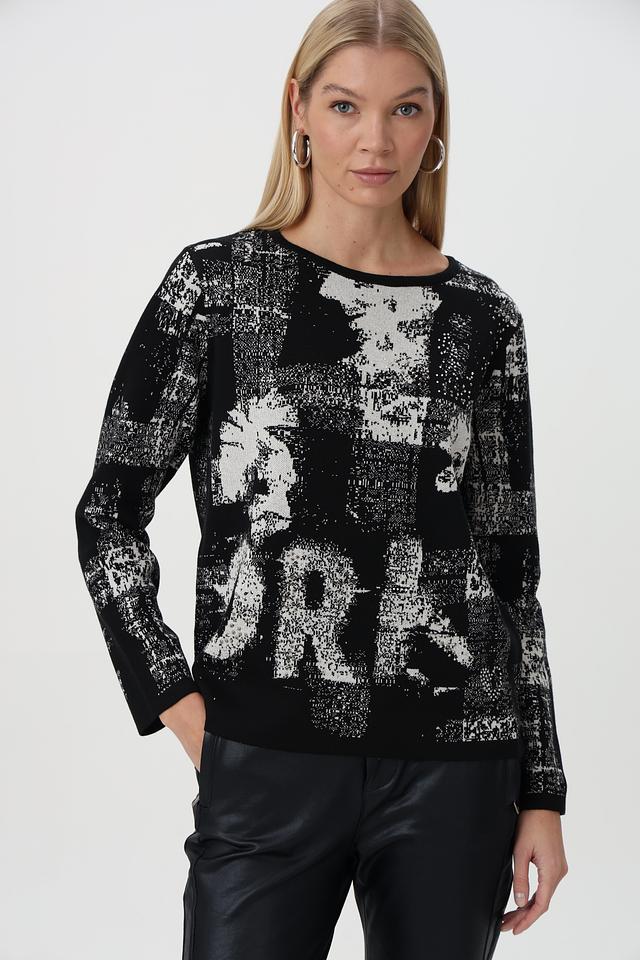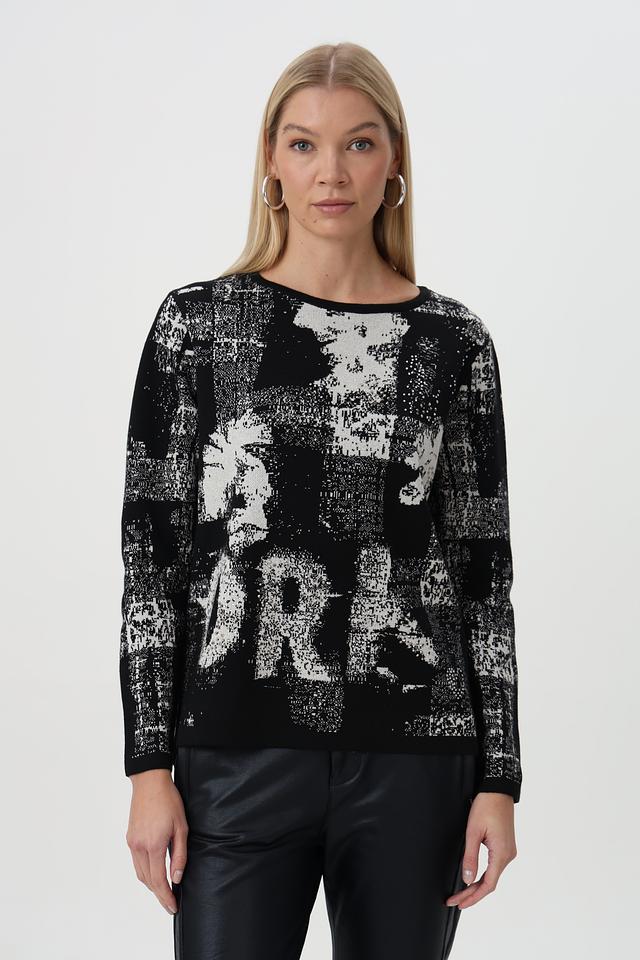 Этот стильный пуловер от Rabe collection станет отличным выбором для создания модного и комфортного образа. Пуловер выполнен в чёрном цвете и украшен оригинальным принтом, который добавляет ему индивидуальности.