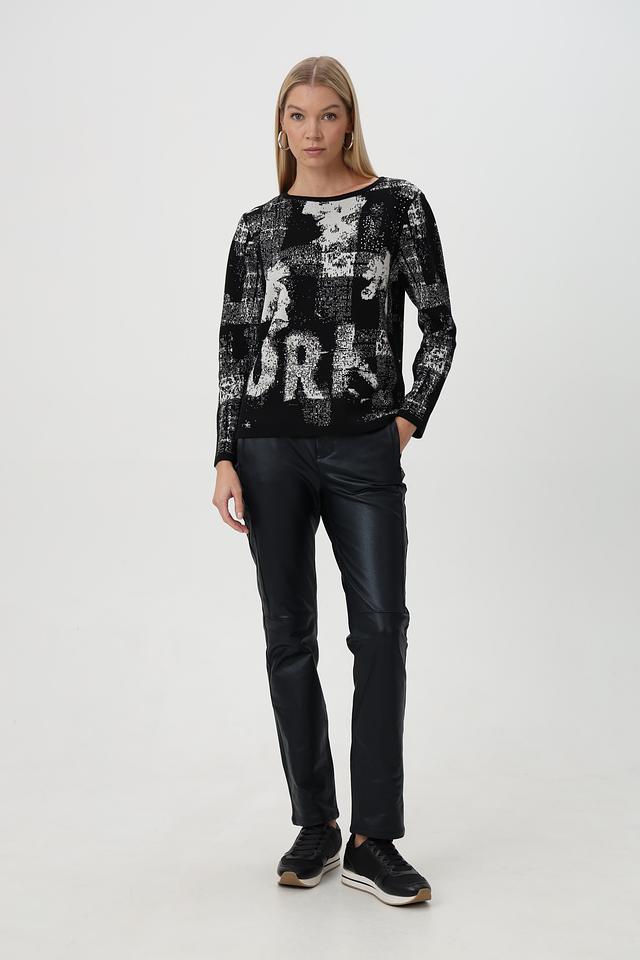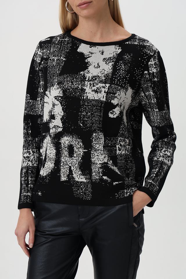 Чёрный пуловер Rabe collection с оригинальным принтом станет стильным дополнением вашего гардероба. Изготовлен из мягкого и приятного к телу сочетания хлопка и акрила. Состав: хлопок 47%, полиакрил 47%, метализ.нить 6%