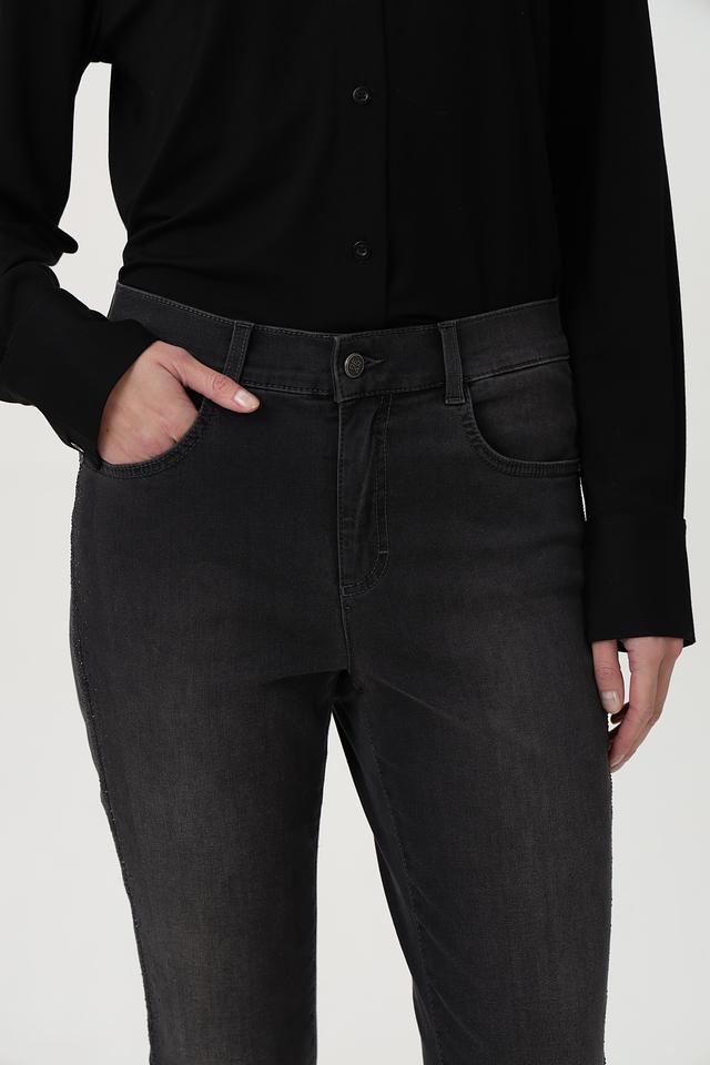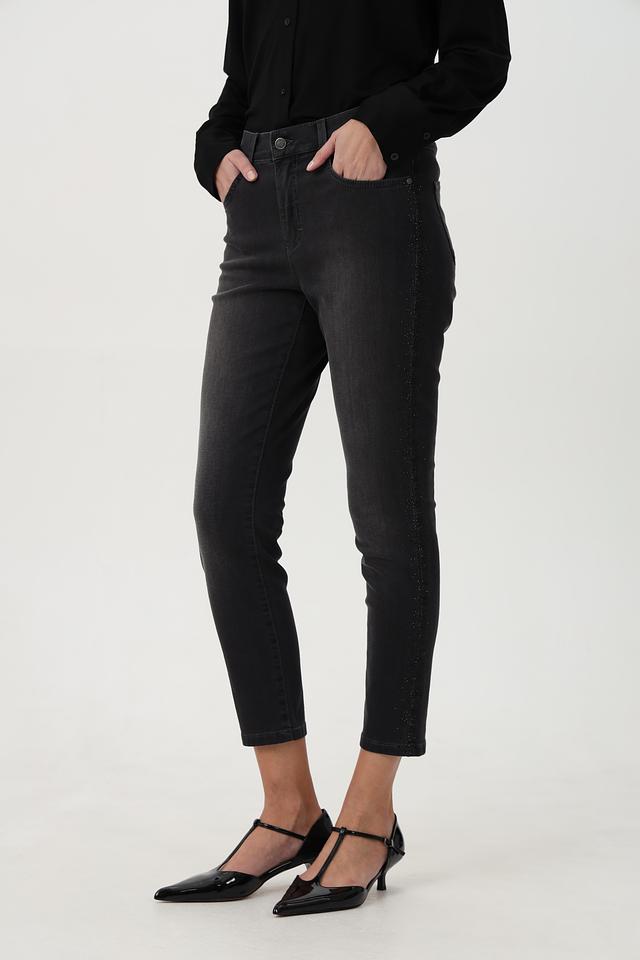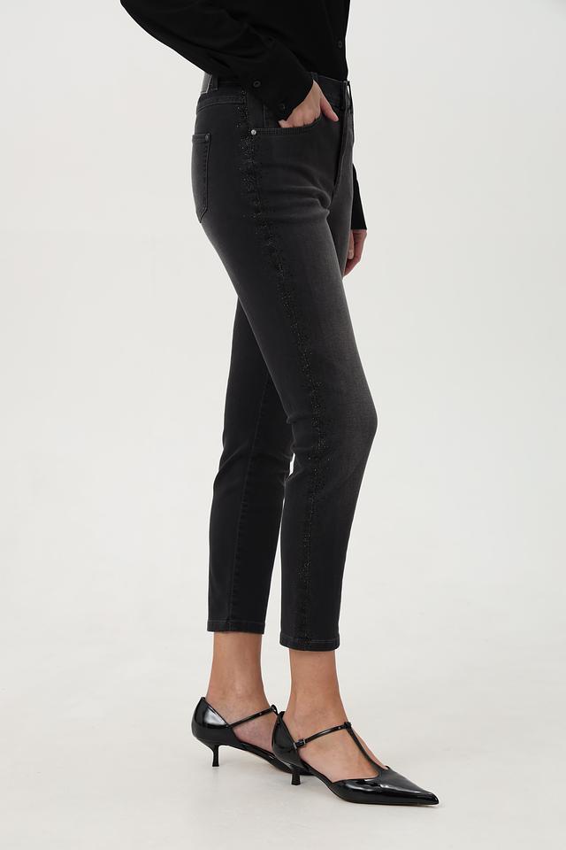Джинсы отличаются оригинальным дизайном благодаря декоративной отделке вдоль боковых швов. Классическая пятикарманная конструкция обеспечивает функциональность и удобство в использовании.