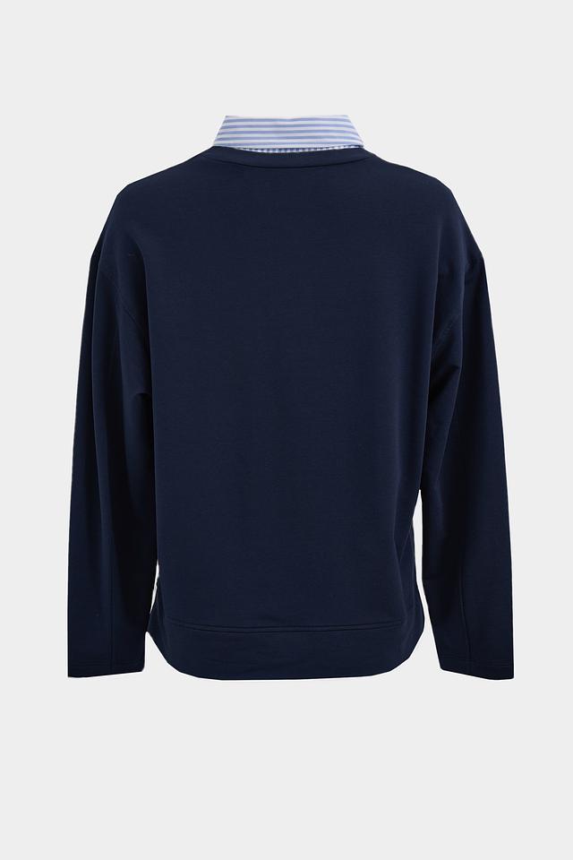 Пуловер изготовлен из высококачественного сочетания материалов: 48% хлопка, 48% модала и 4% эластана. Хлопок обеспечивает воздухопроницаемость и комфорт, модал придает мягкость и шелковистость, а эластан – эластичность и хорошую посадку по фигуре.