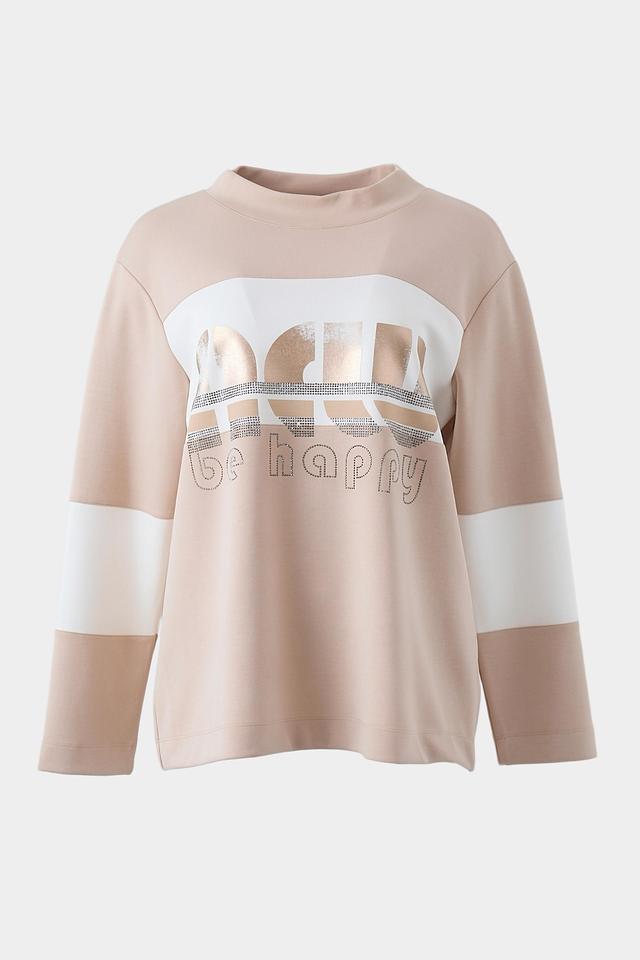 Бежевый пуловер от Rabe collection с ярким принтом и контрастными вставками станет стильным дополнением к вашему гардеробу. Модель выполнена из мягкого и приятного к телу трикотажа, обеспечивающего комфорт в течение дня. Состав: полиэстер 48%, вискоза 47%, эластан 5%