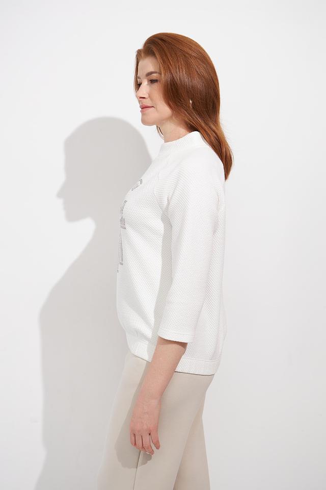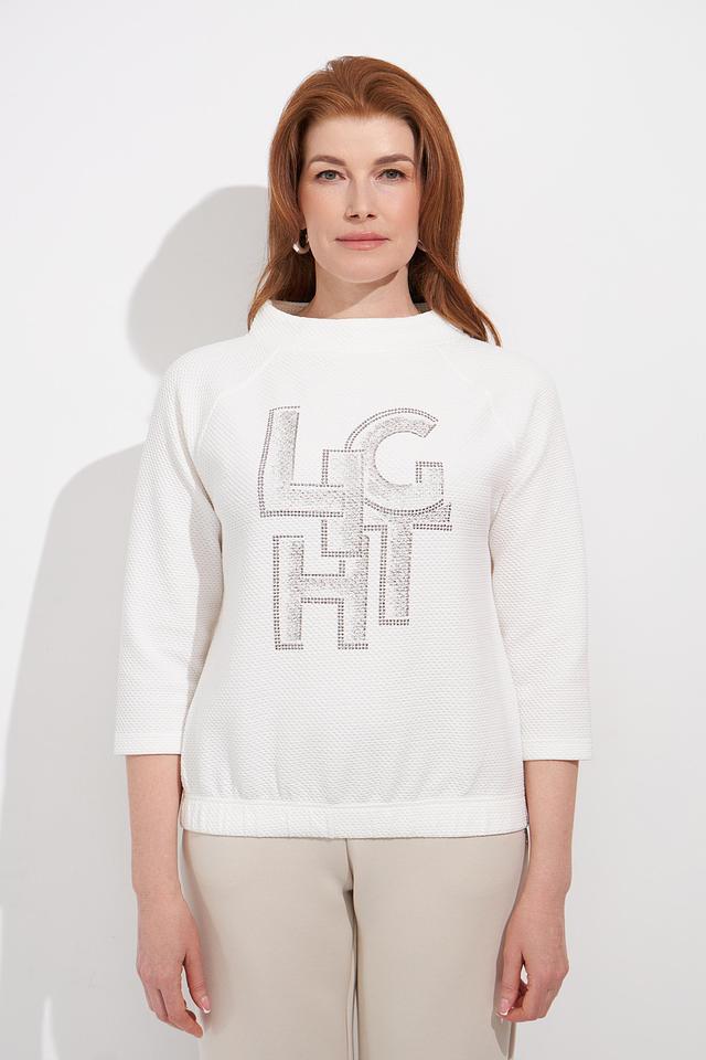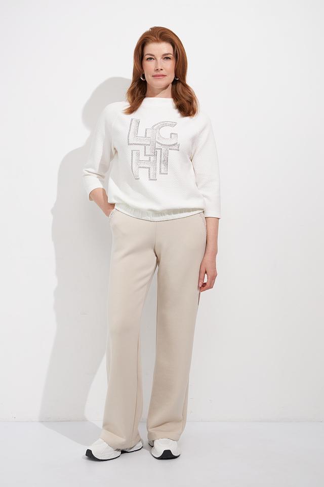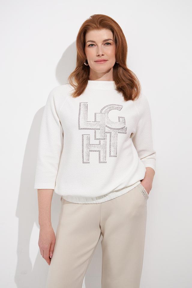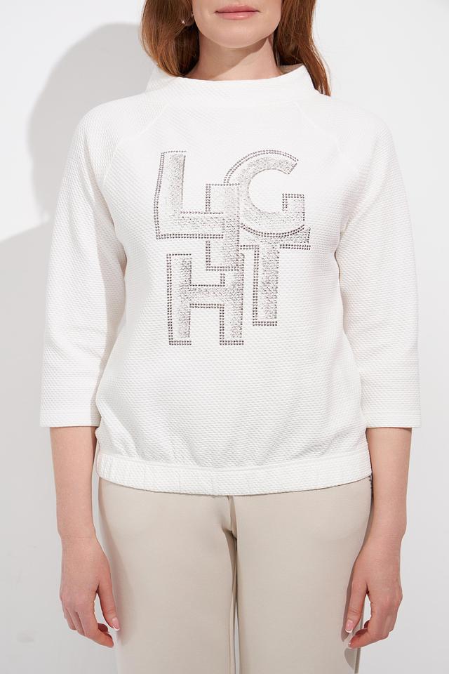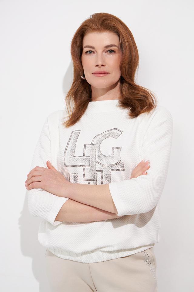 Этот стильный пуловер от Rabe collection станет прекрасным дополнением к вашему гардеробу. Пуловер выполнен в белом цвете и украшен эффектным логотипом, инкрустированным стразами, что придает ему особый шарм.