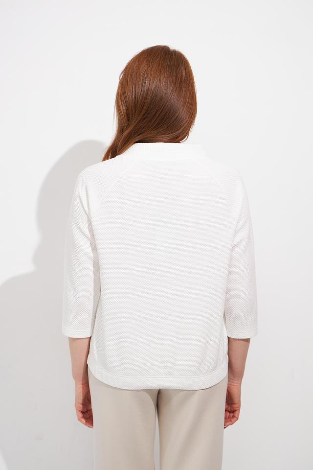 Модель имеет удобный крой, который не сковывает движений, и округлый вырез горловины. Рукава 3/4 делают этот пуловер универсальным для любого времени года. Пуловер изготовлен из высококачественного трикотажа, в составе которого хлопок, полиэстер и эластан, что обеспечивает комфорт и долговечность изделия.