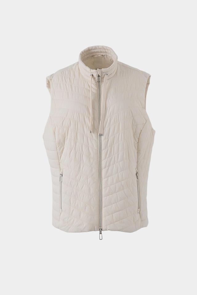 Этот жилет от Rabe collection станет отличным дополнением к вашему гардеробу. Он выполнен в нежном бежевом цвете и имеет стеганую фактуру, которая придает ему современный вид.