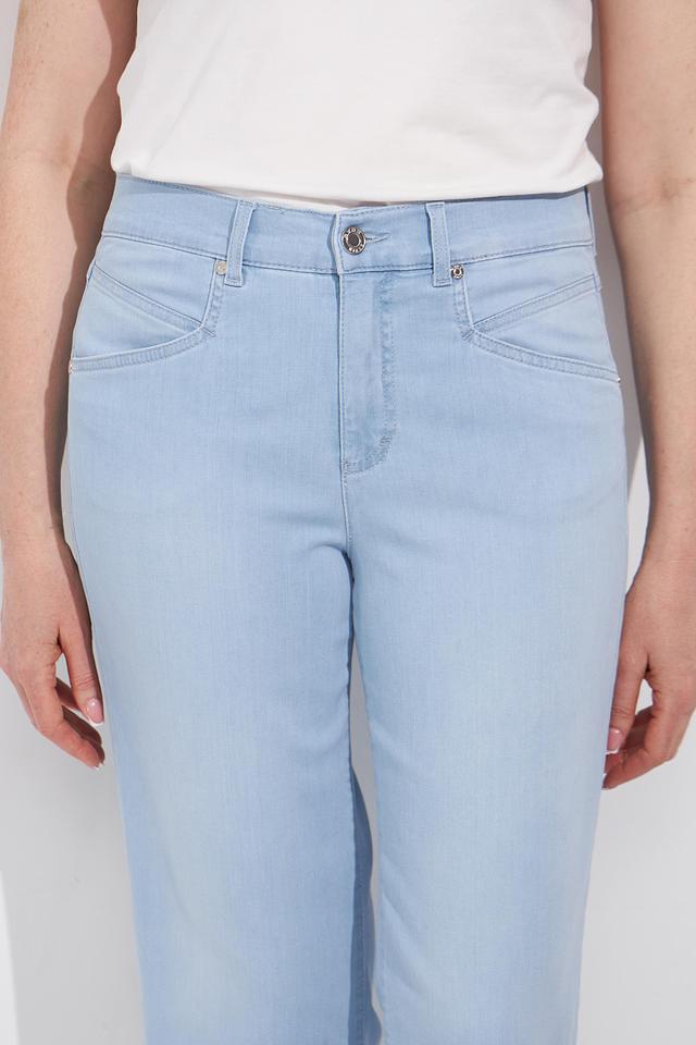 Джинсы оснащены стандартными карманами и застежкой на молнию и пуговицу. Деликатный светло-голубой оттенок и минималистичный дизайн делают эти джинсы универсальным элементом вашего гардероба.