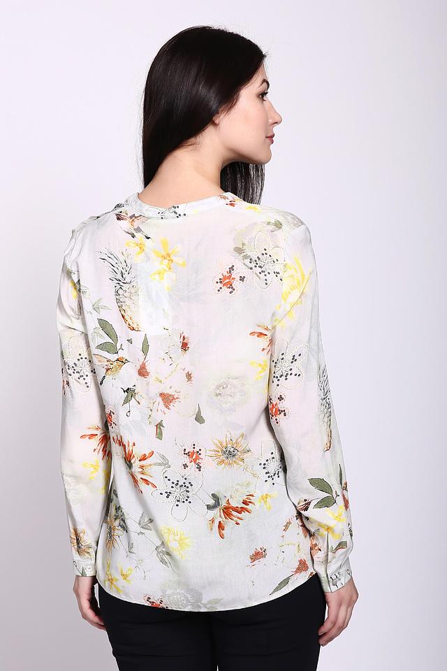 Особенностью данной модели является яркий и красочный цветочный принт, который придает ей женственности и легкости. Блуза идеально подойдет для создания как повседневных, так и более нарядных образов.