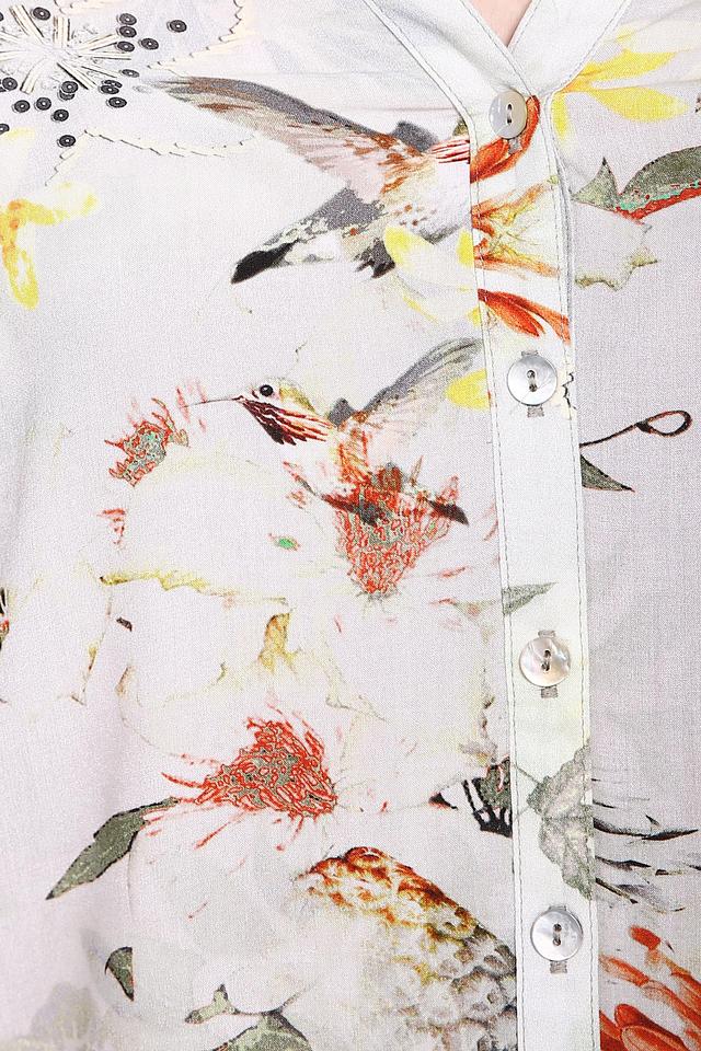 Белая блуза Rabe collection с ярким цветочным принтом станет отличным дополнением к вашему гардеробу. Модель выполнена из 100% вискозы, что обеспечивает комфорт и легкость в носке. Состав: вискоза 100%