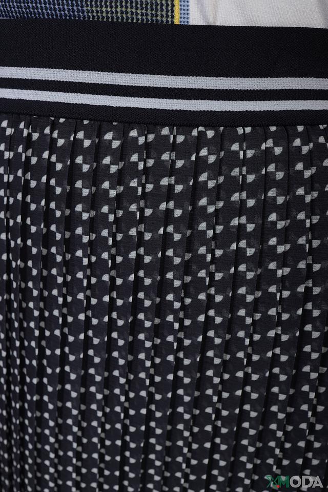 Юбка имеет классическую длину миди и плиссированную текстуру, которая придает ей элегантный и женственный вид. Эластичный пояс обеспечивает комфортную посадку по фигуре.