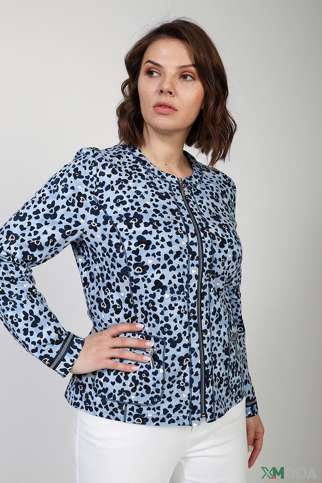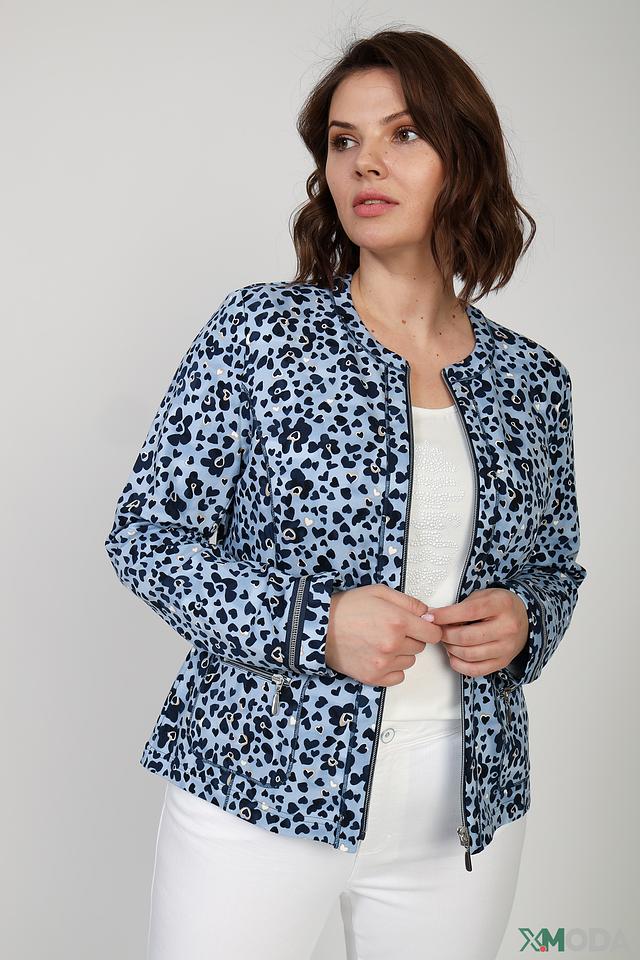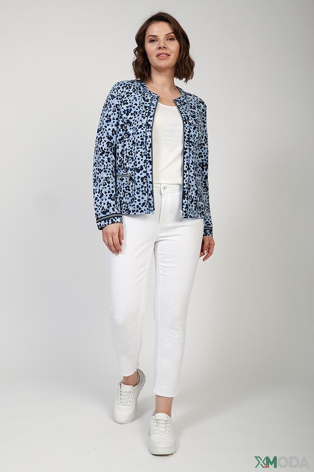 Жакет Rabe collection голубого цвета с оригинальным принтом – стильное решение для создания модных образов. Модель выполнена из хлопка с добавлением эластана, что обеспечивает комфорт и свободу движений. Застежка – молния. Состав: хлопок 94%, эластан 6%