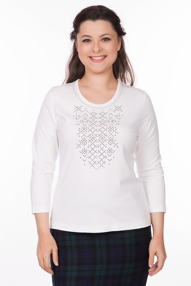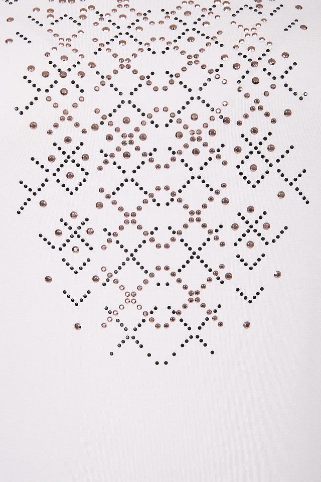Белая блуза от Rabe collection, украшенная декоративными камнями, станет стильным дополнением к вашему гардеробу. Модель с рукавом 3/4 и округлым вырезом горловины выполнена из мягкой вискозы с добавлением эластана. Состав: вискоза 92%, эластан 8%