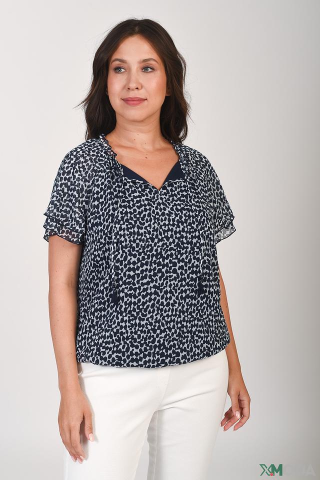 Эта блуза от Rabe collection – отличный выбор для создания элегантного и непринужденного образа. Блуза выполнена в синем цвете и украшена стильным леопардовым принтом, который придаёт ей особую изюминку.