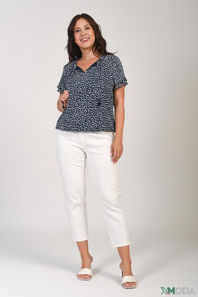 Синяя блуза Rabe collection с оригинальным леопардовым принтом станет стильным дополнением к вашему гардеробу. Модель выполнена из лёгкого полиэстера и имеет короткие рукава с воланами. Состав: полиэстер 100%, Состав_подкладка вискоза 92%, Состав_подкладка эластан 8%