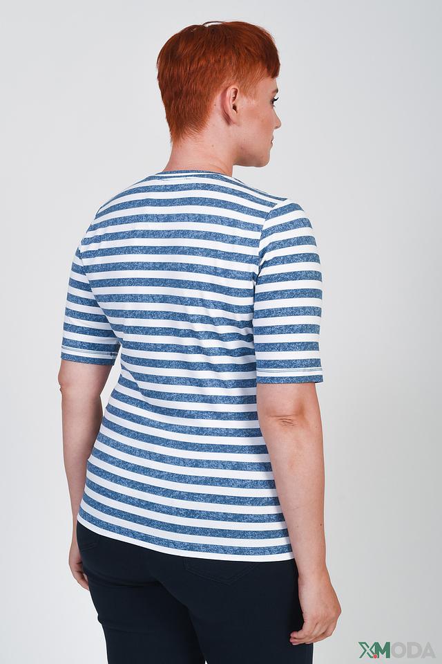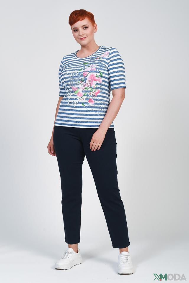 Женская футболка Rabe collection синего цвета с ярким цветочным принтом. Модель выполнена в полоску и станет отличным дополнением к вашему образу. Изготовлена из мягкой и приятной к телу вискозы с добавлением эластана. Состав: вискоза 92%, эластан 8%