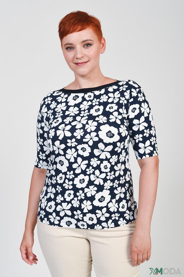 Женская футболка Rabe collection темно-синего цвета с ярким цветочным принтом. Модель выполнена из мягкой вискозы с добавлением эластана, обеспечивающего комфортную посадку. Идеальный выбор для создания стильного и легкого образа. Состав: вискоза 96%, эластан 4%